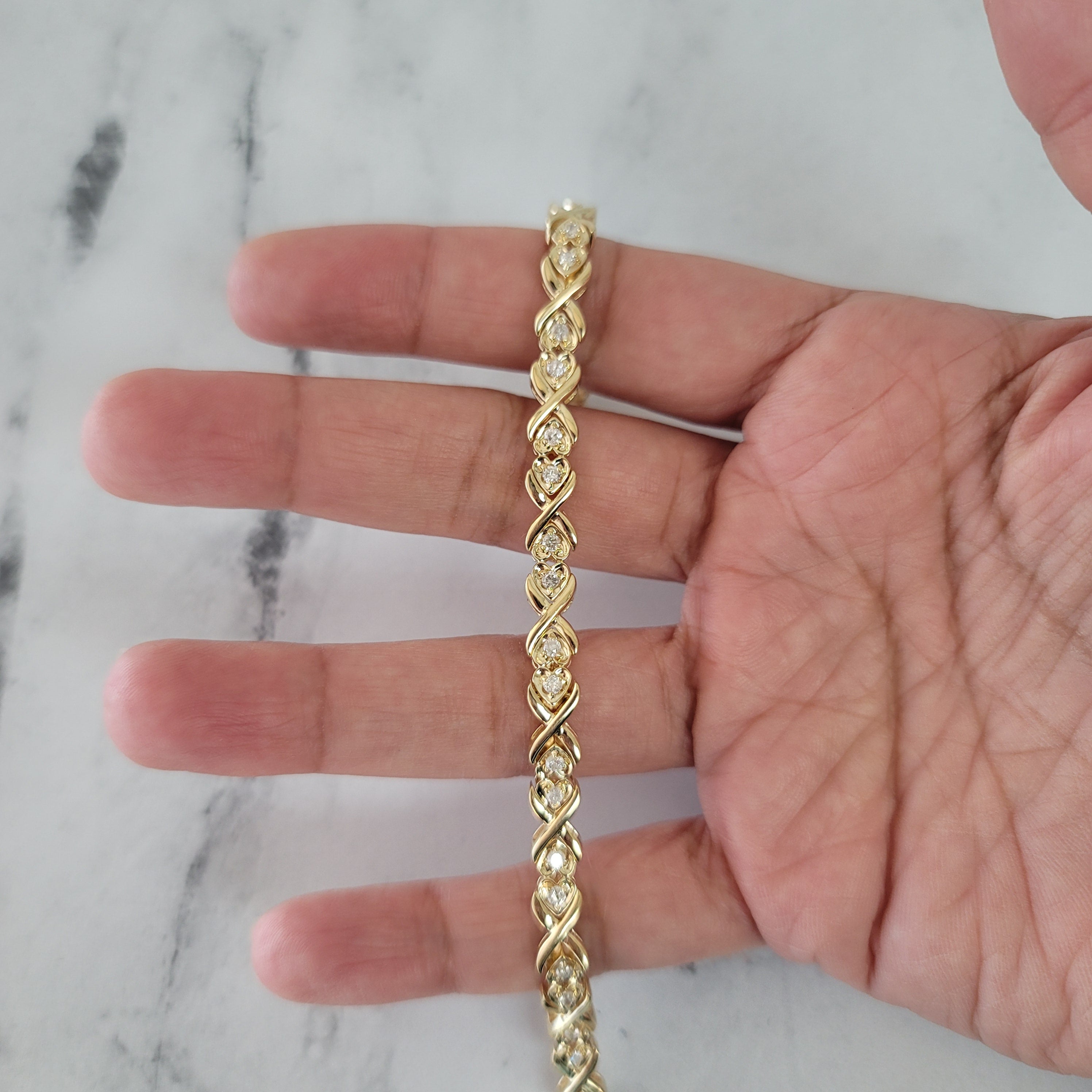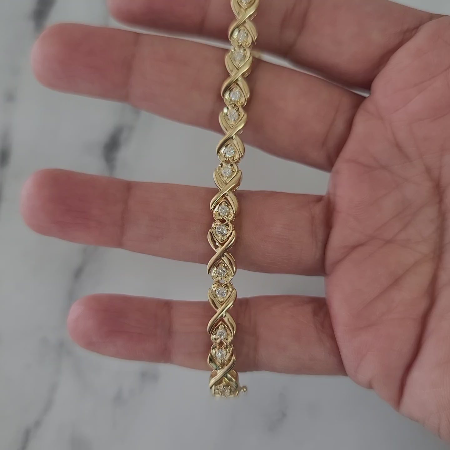 Pulseras de tenis con diamantes enlazados en forma de corazón doble