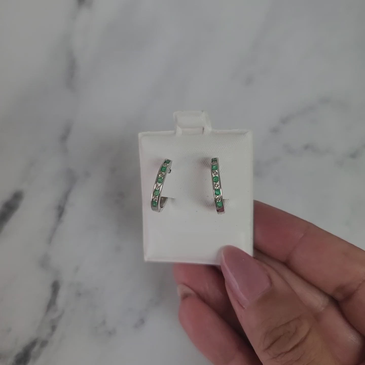 Aros con esmeraldas y diamantes, 0,51 ct, oro blanco de 14 k