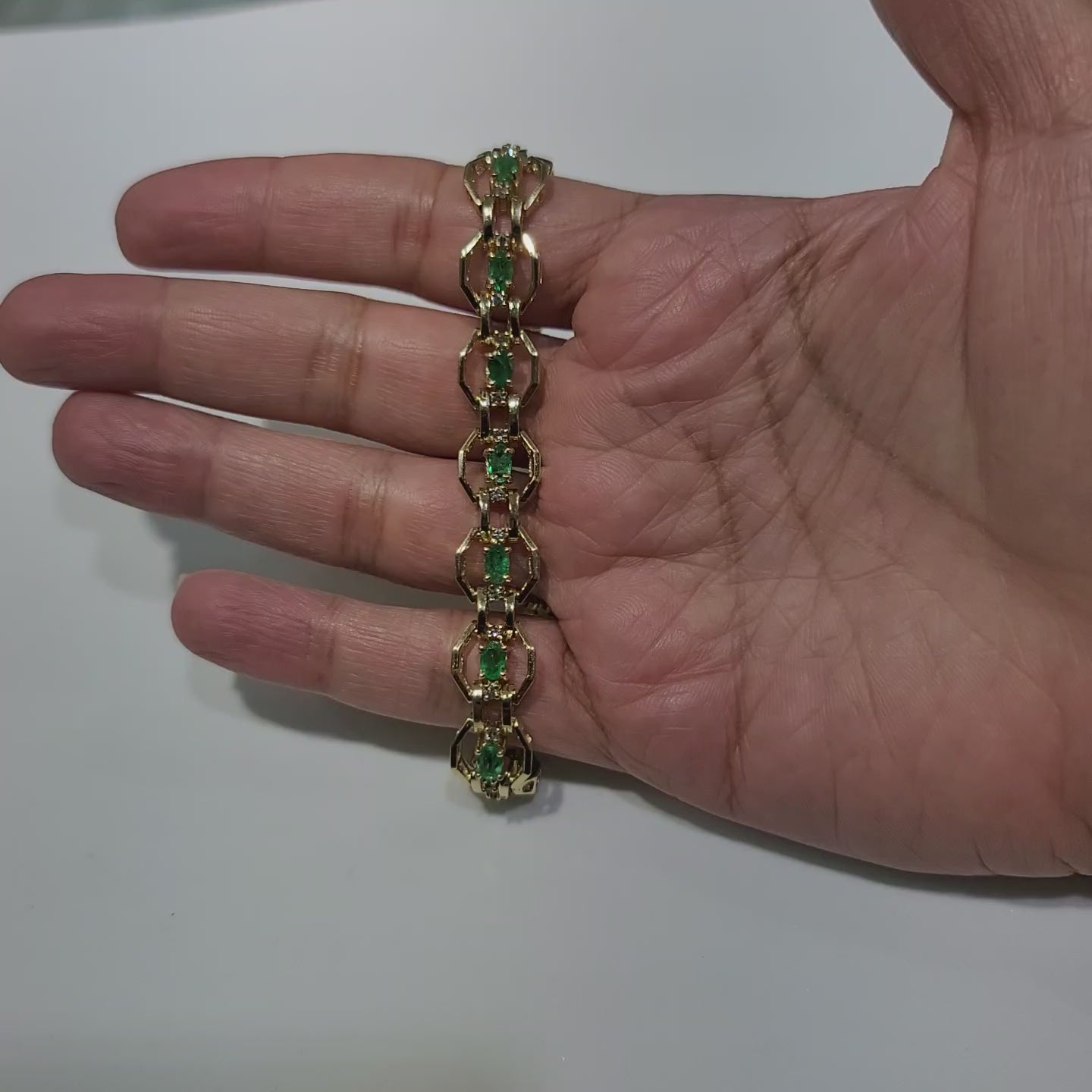 Pulsera de tenis con esmeraldas y diamantes, 4,25 cts, oro amarillo de 14 k