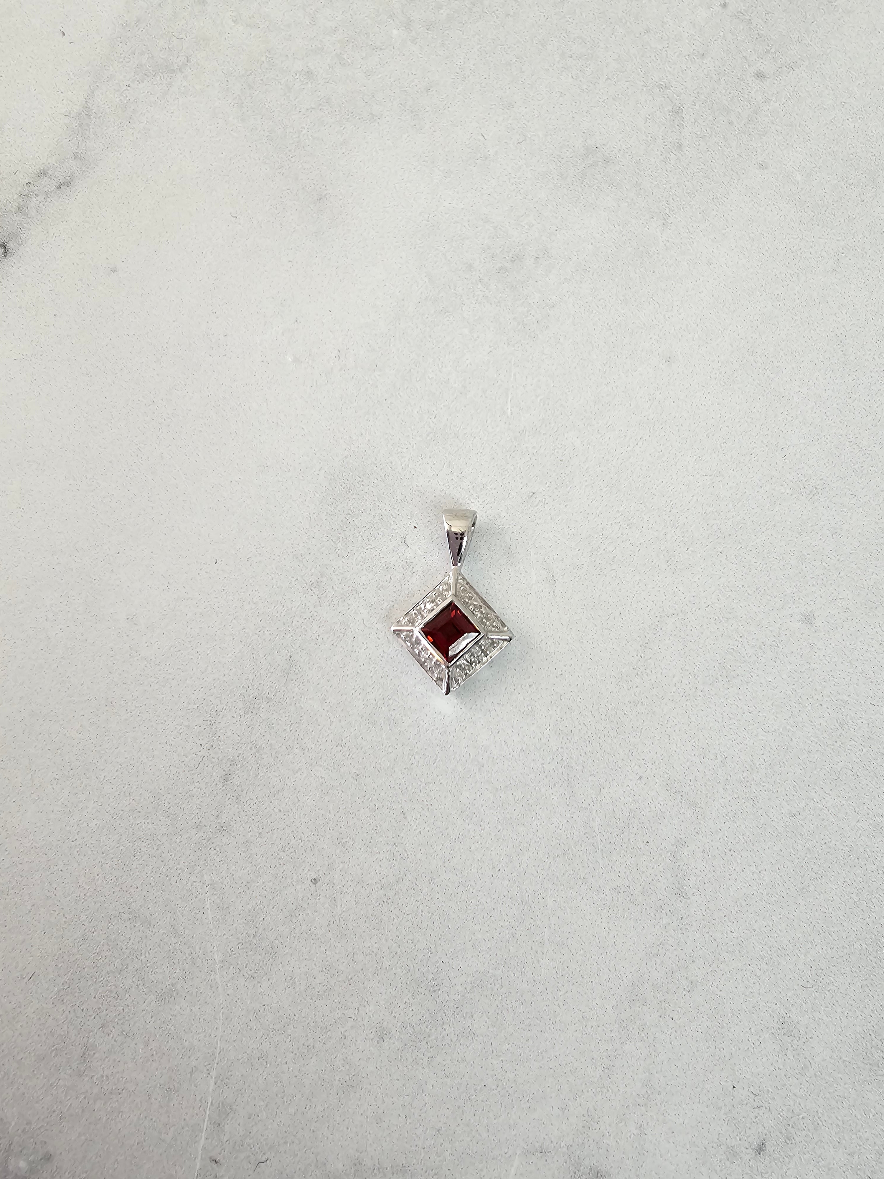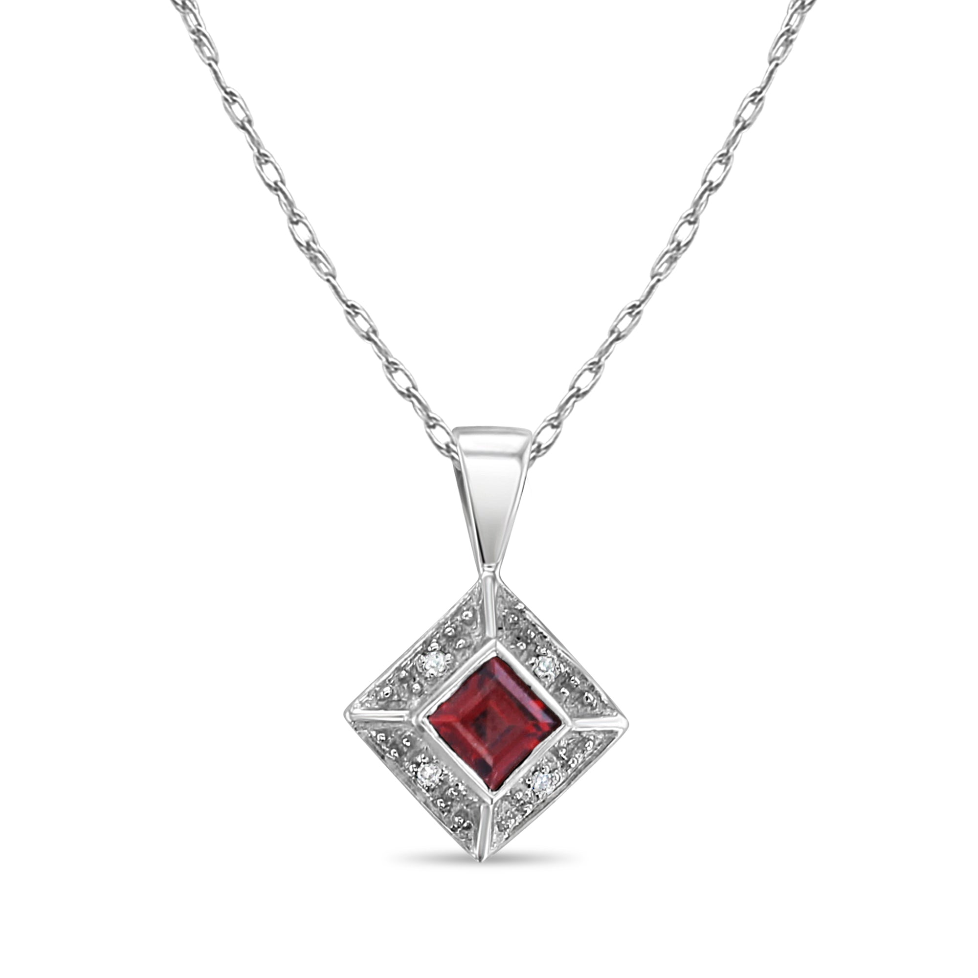 Collar de granate con detalles de diamantes en engaste de cuentas en oro blanco de 14 k
