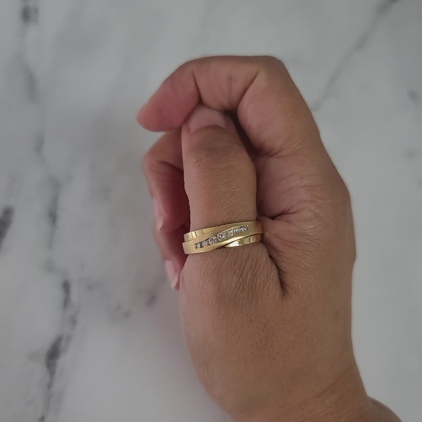 Alianza de boda para hombre con diamantes en oro amarillo de 10 quilates