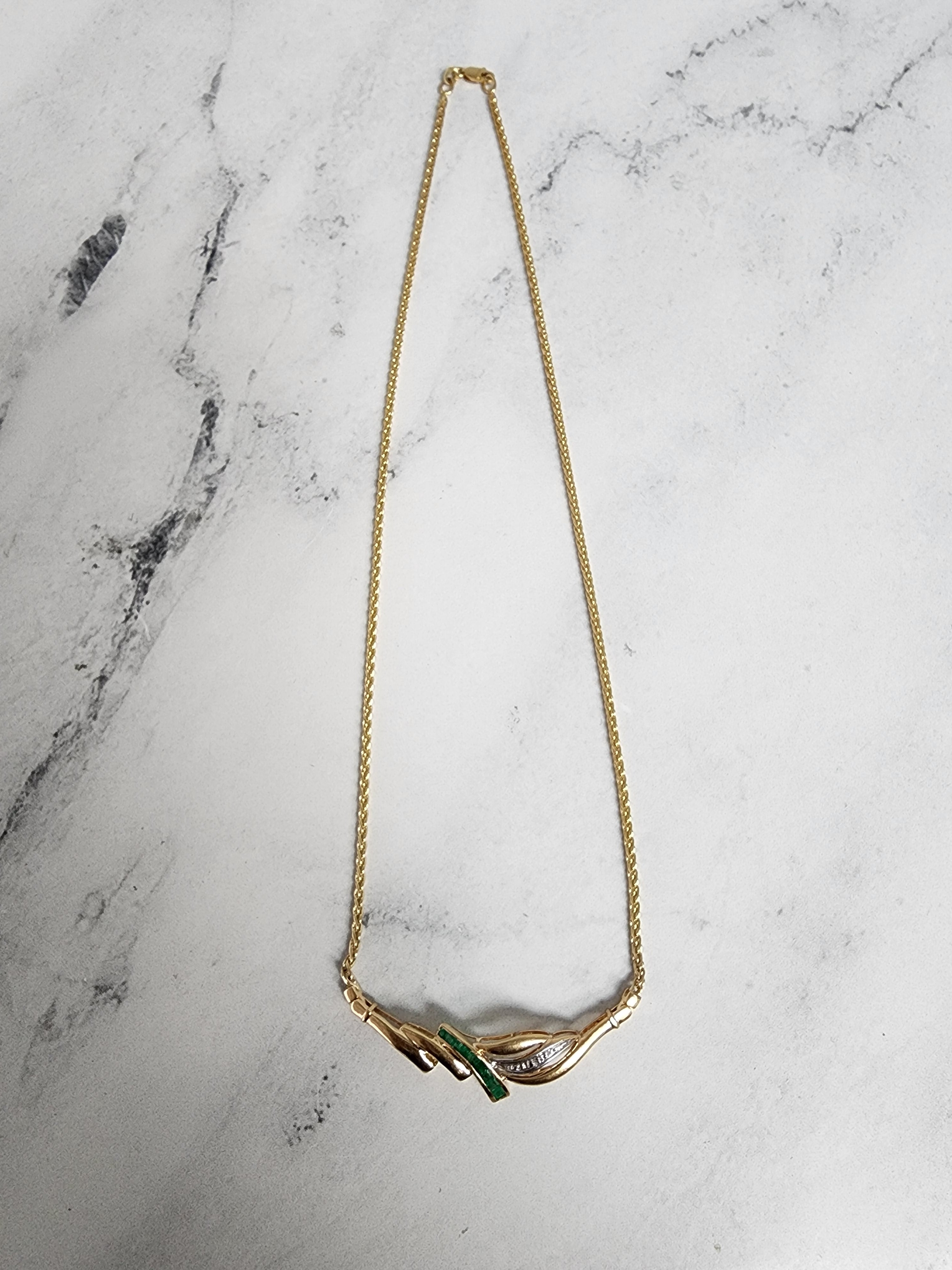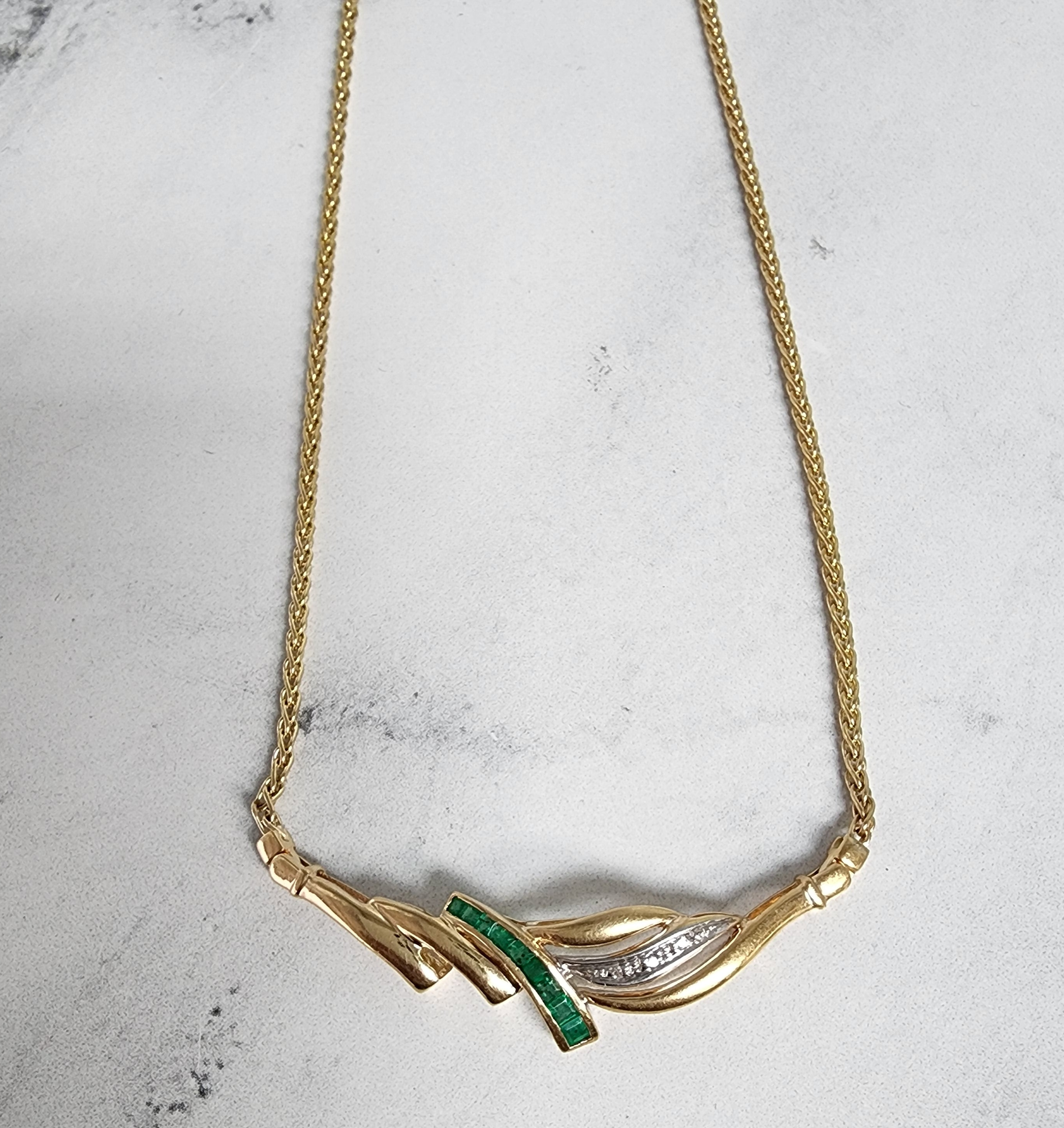 Collar de esmeraldas y diamantes de medio quilate con cadena de espigas de trigo