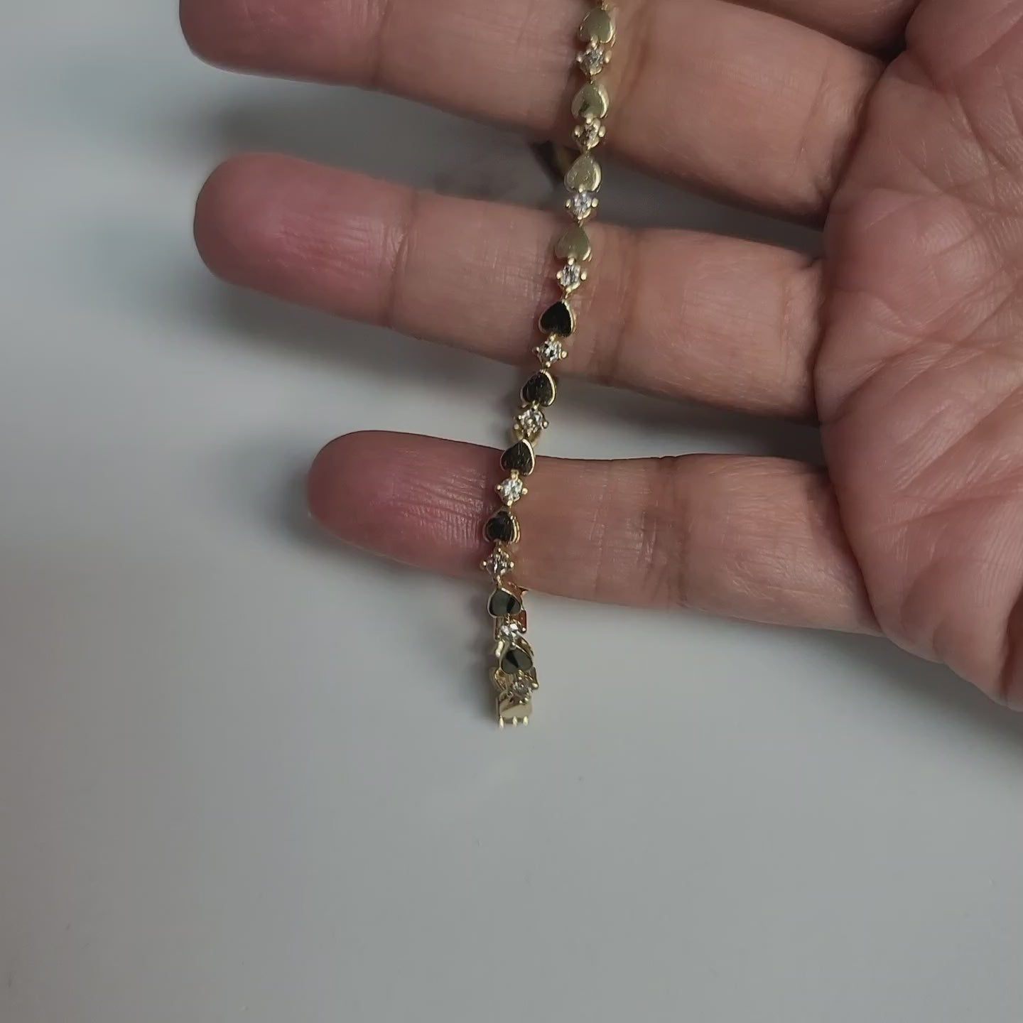 Pulsera de tenis con diamantes en forma de corazón en oro amarillo de 14 k