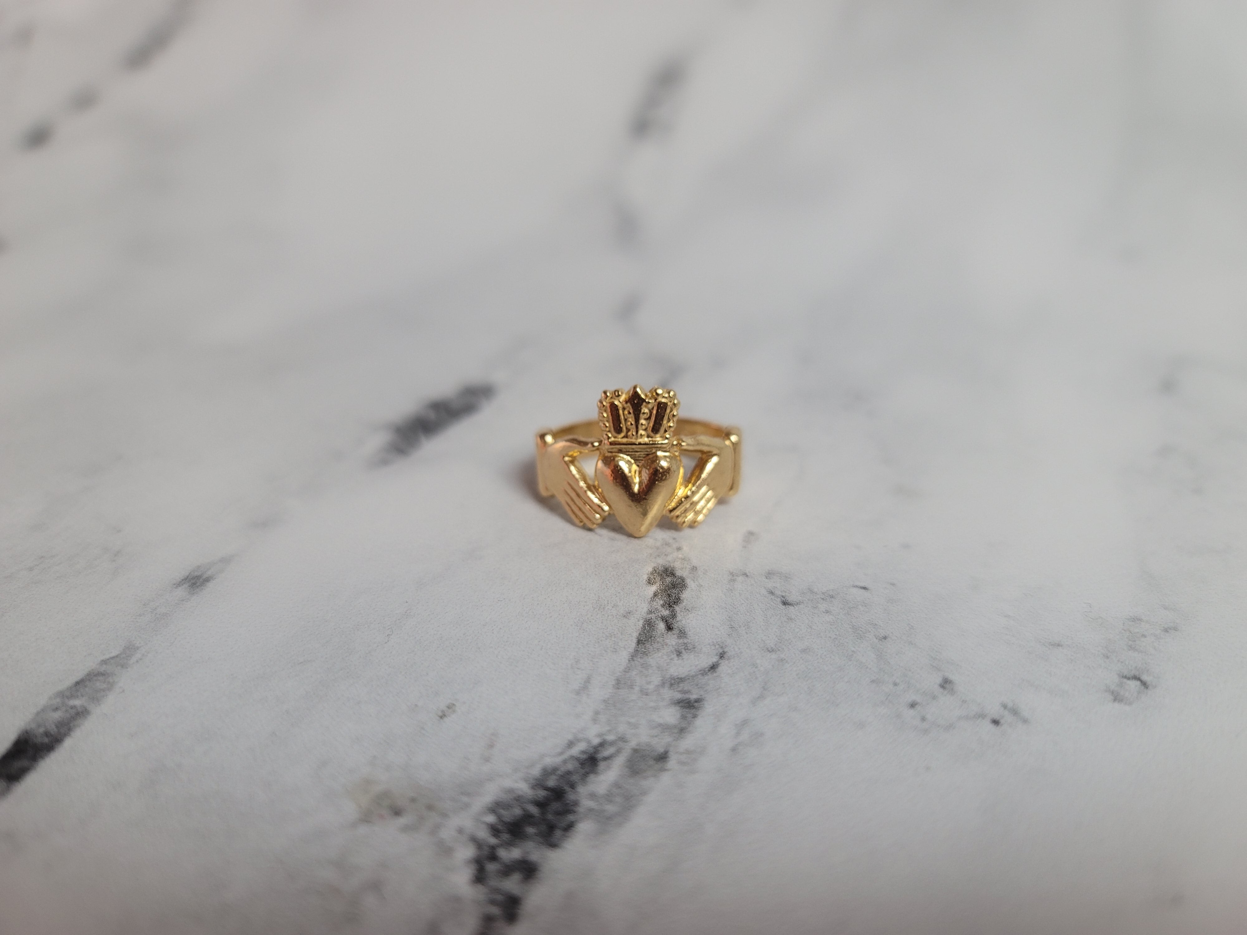 Anillo Claddagh irlandés de oro amarillo de gran tamaño