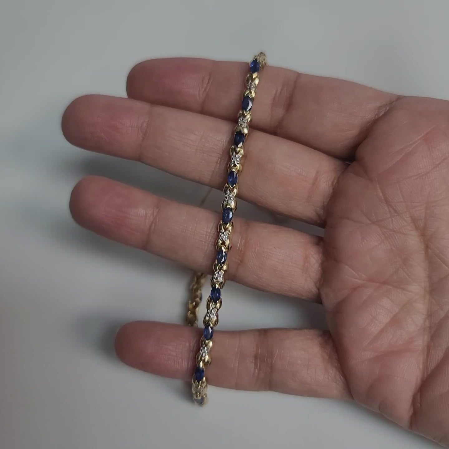 Pulsera de tenis con eslabones en forma de X de diamantes y zafiro marquesa