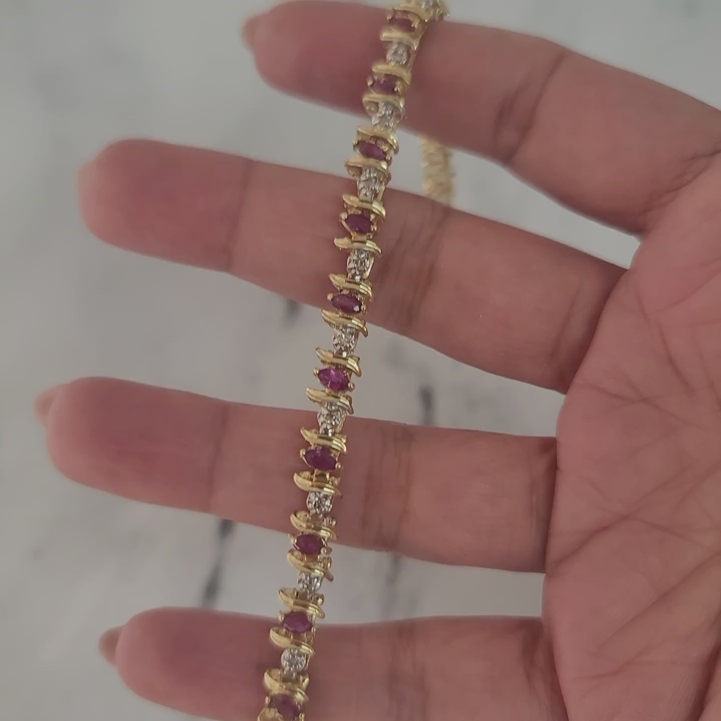 Pulsera de tenis con rubíes y diamantes de talla marquesa