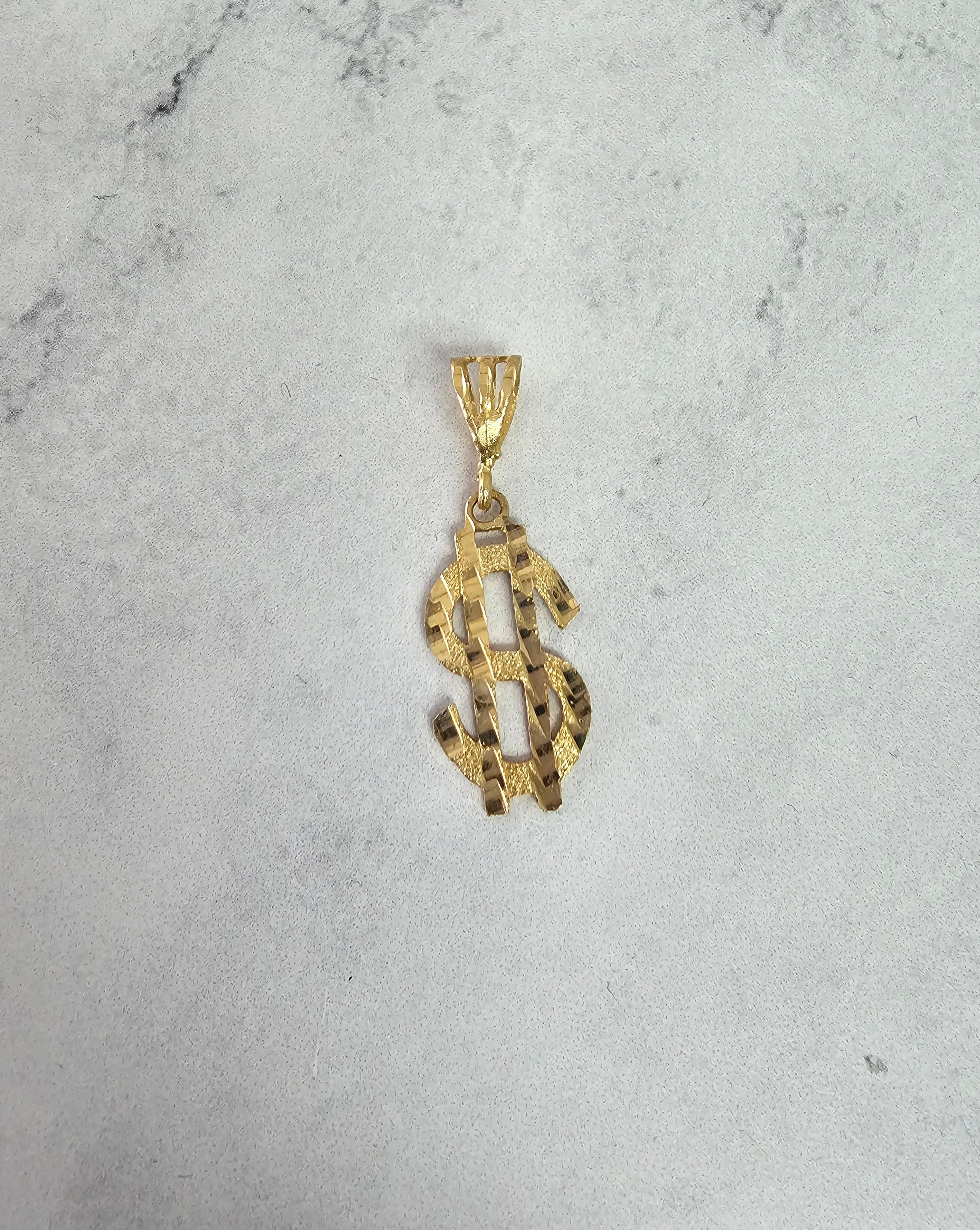 Símbolo de dólar con cortes de diamantes en oro amarillo de 10 k