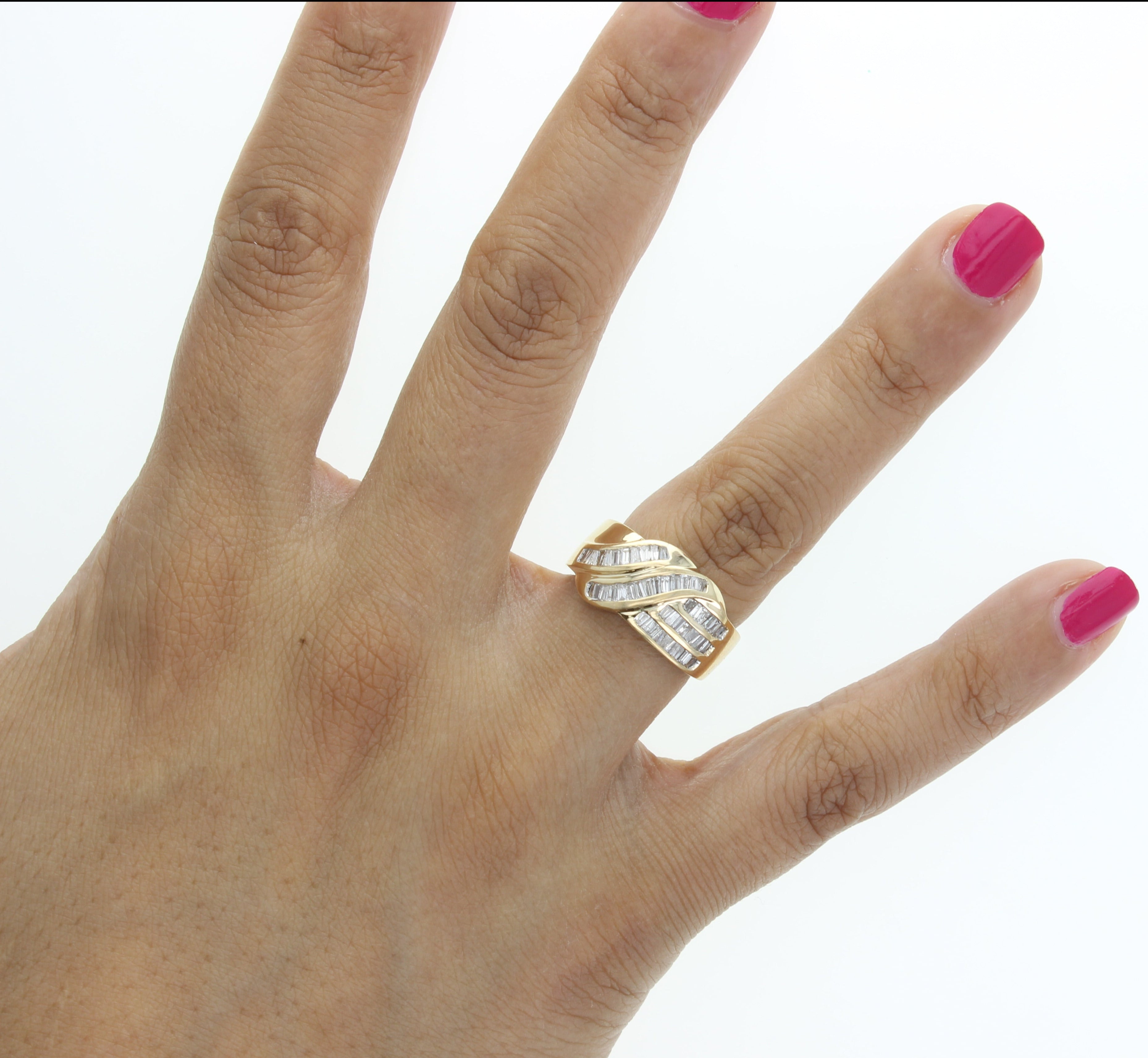 Anillo de cinta con diamantes de un quilate y talla baguette