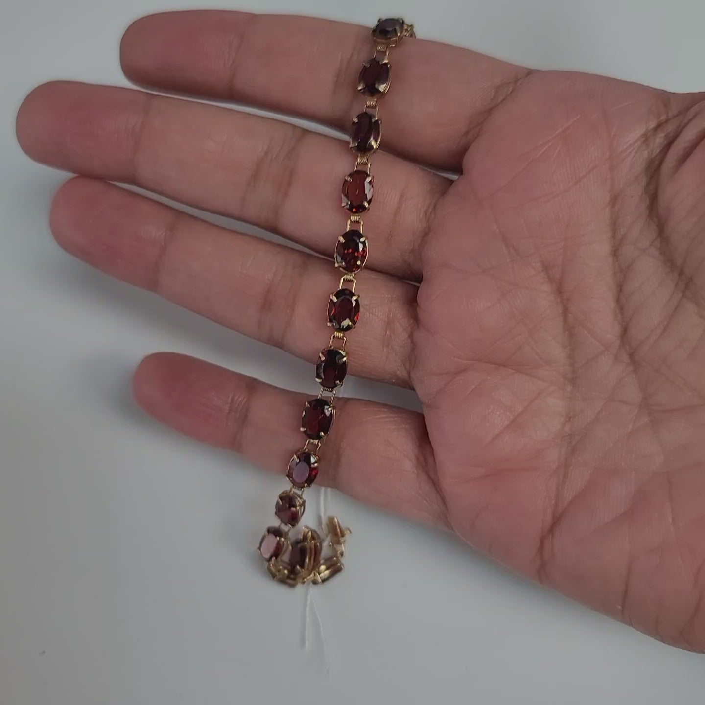 Pulsera de tenis con granate ovalado de 21,00 cts en oro blanco o amarillo de 14 k