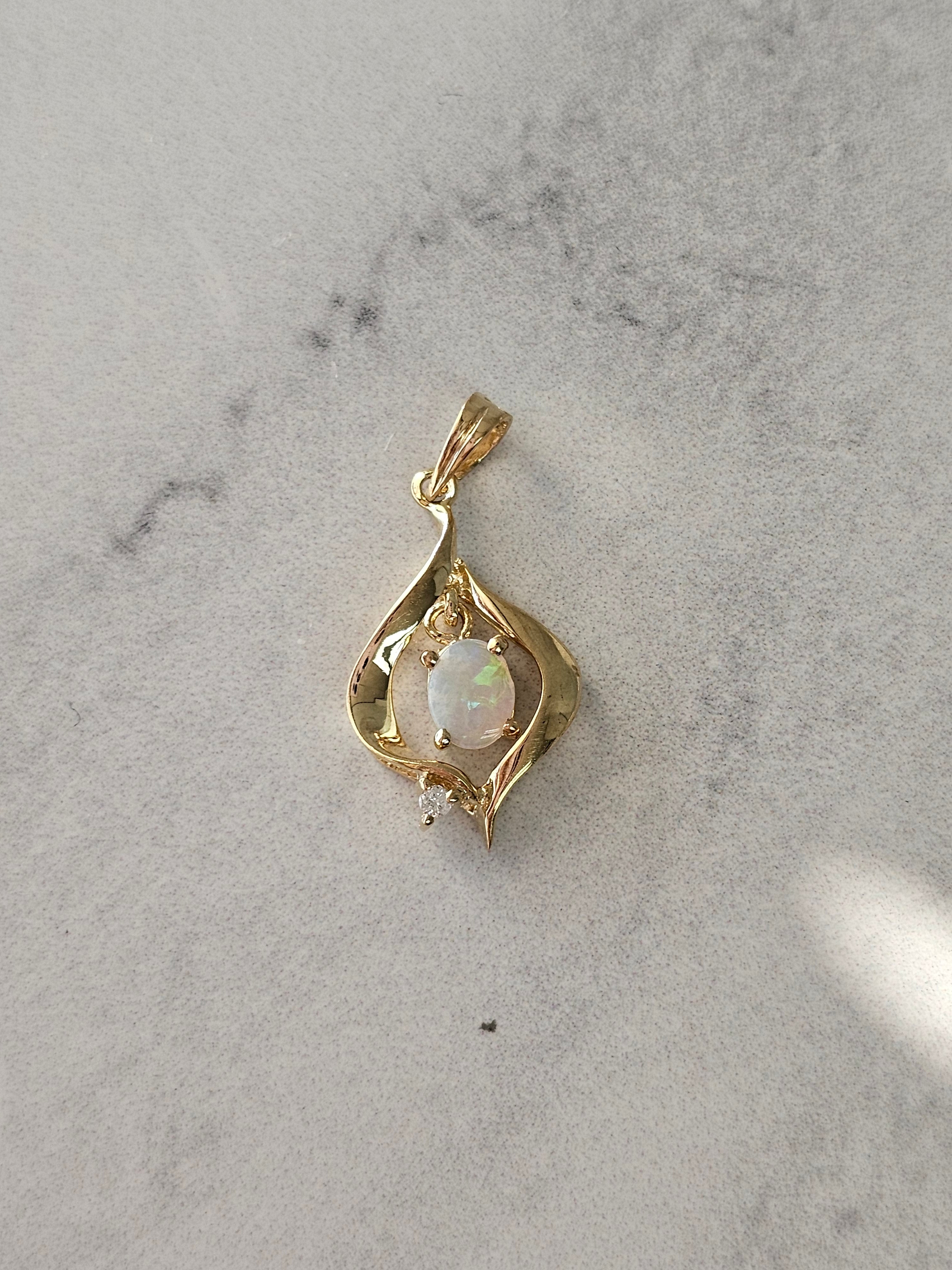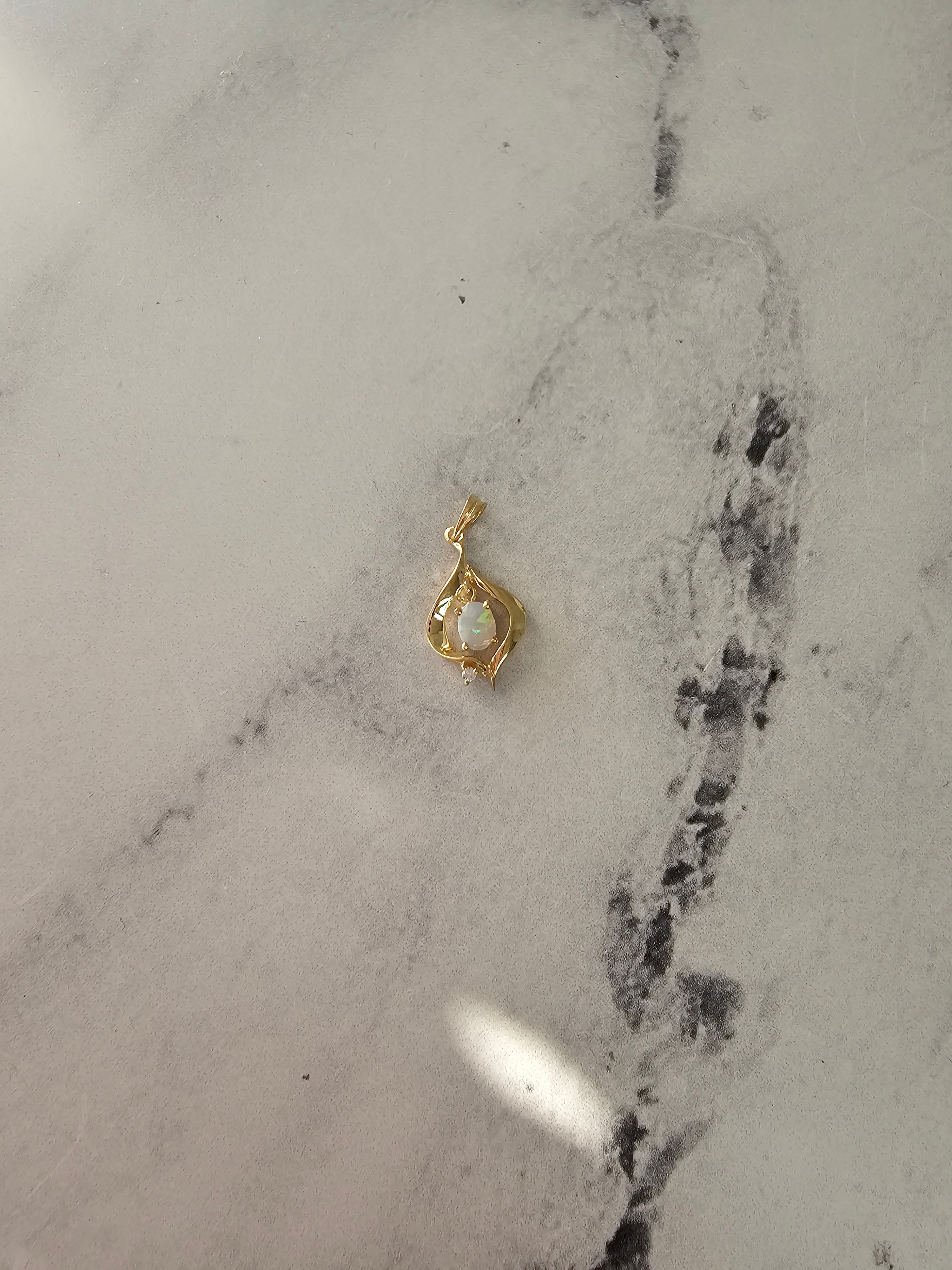 Collar colgante de ópalo ovalado en oro amarillo de 14 k