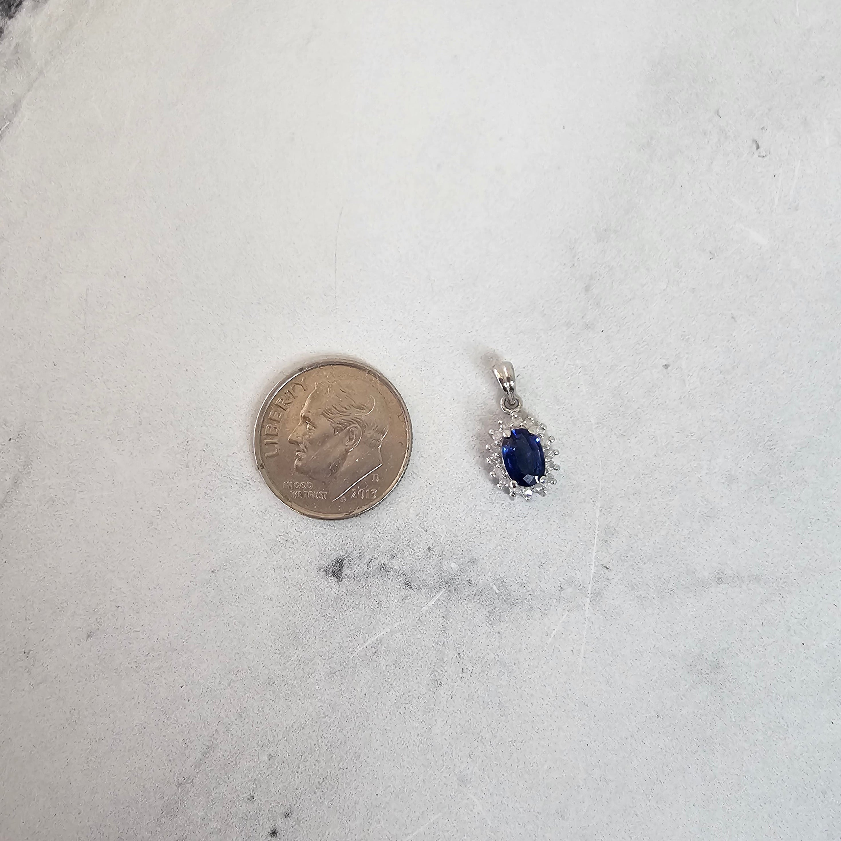 Collar con halo de diamantes y zafiro ovalado en oro blanco de 14 k