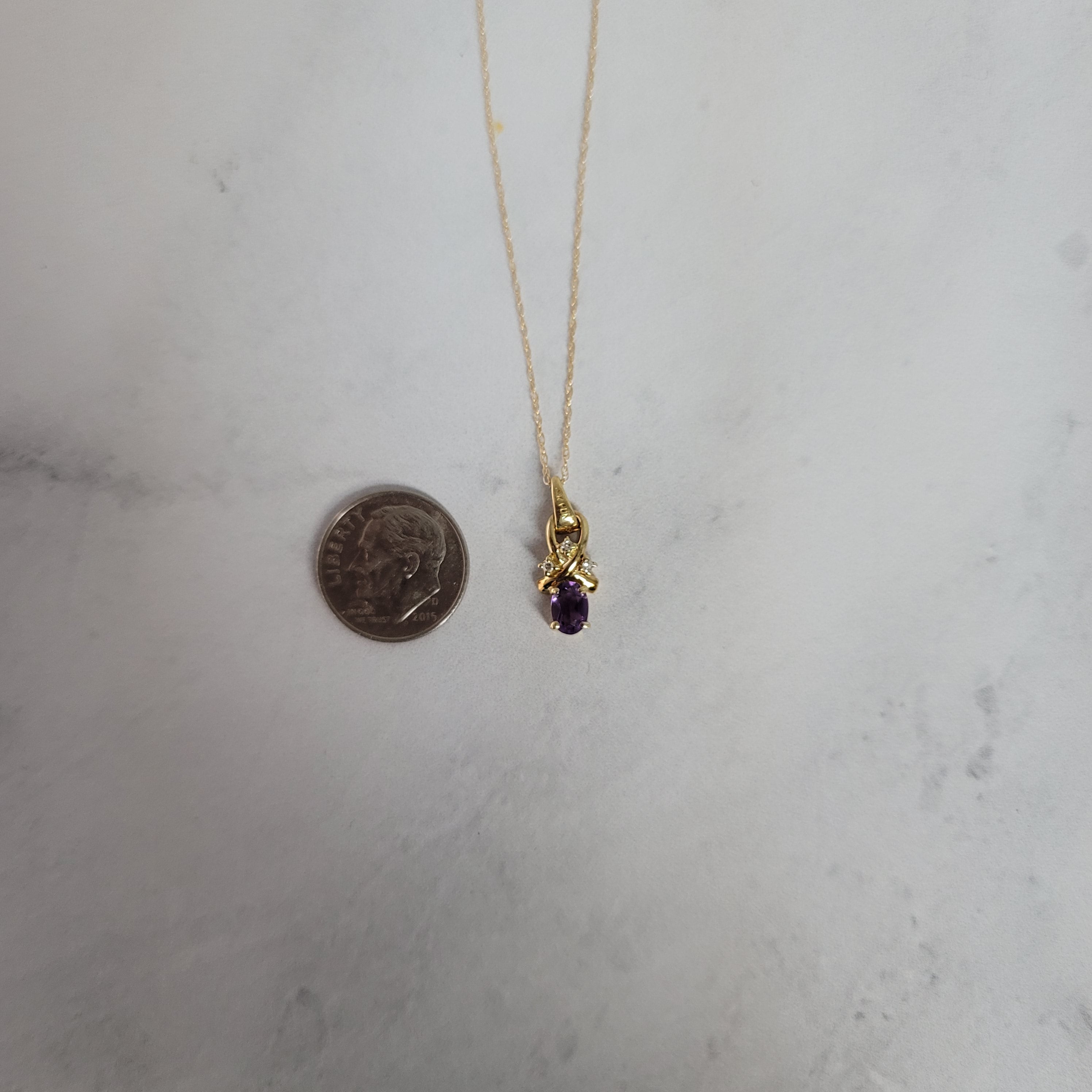Colgante vintage ovalado de amatista en oro amarillo de 14 k