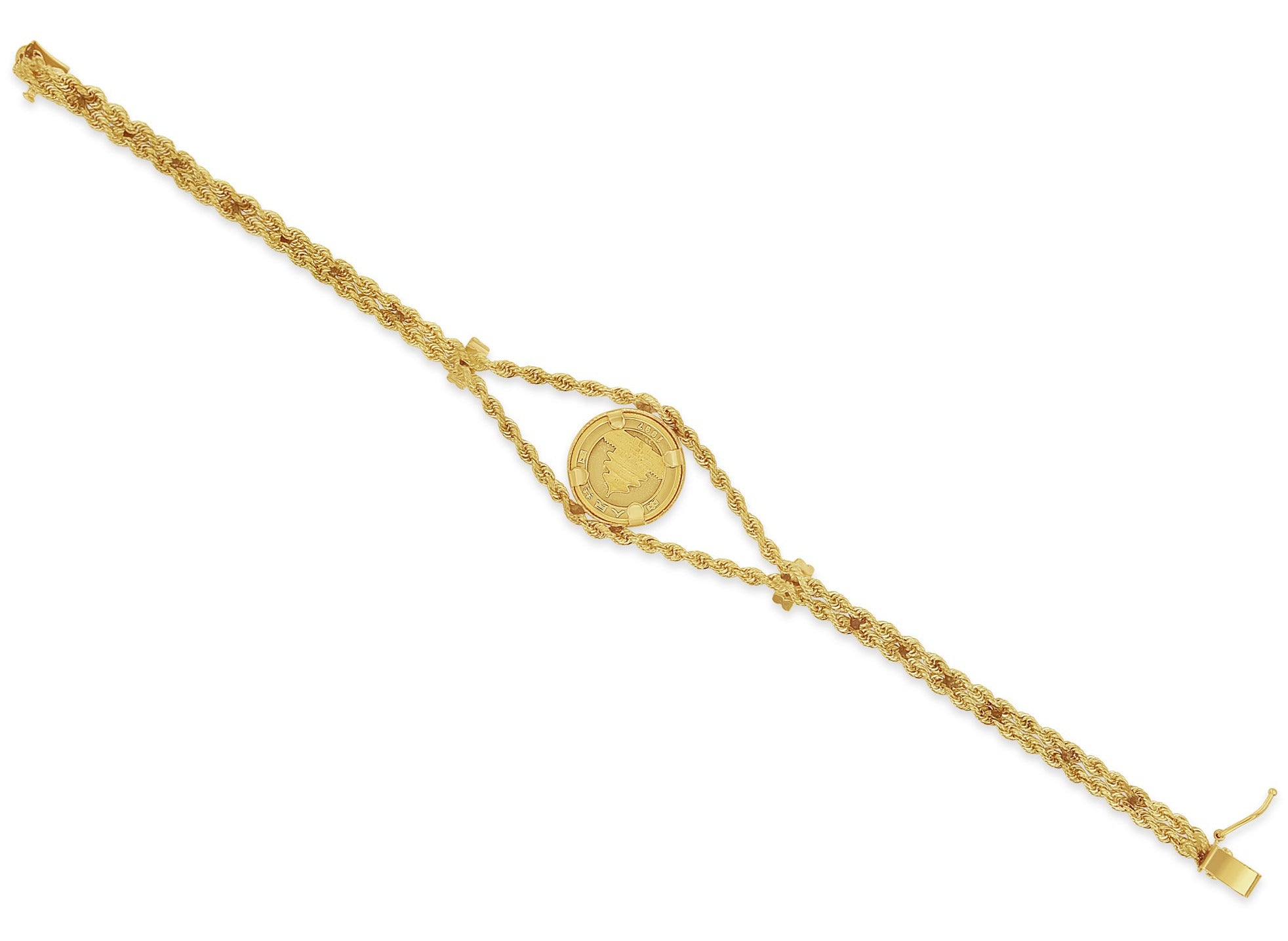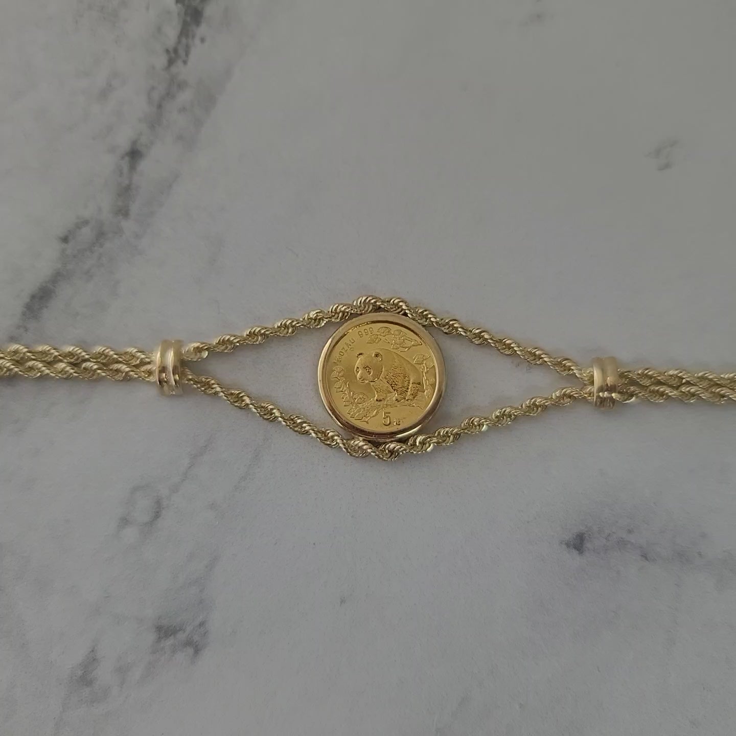 Pulsera con bisel pulido y moneda de panda de 1/20 oz