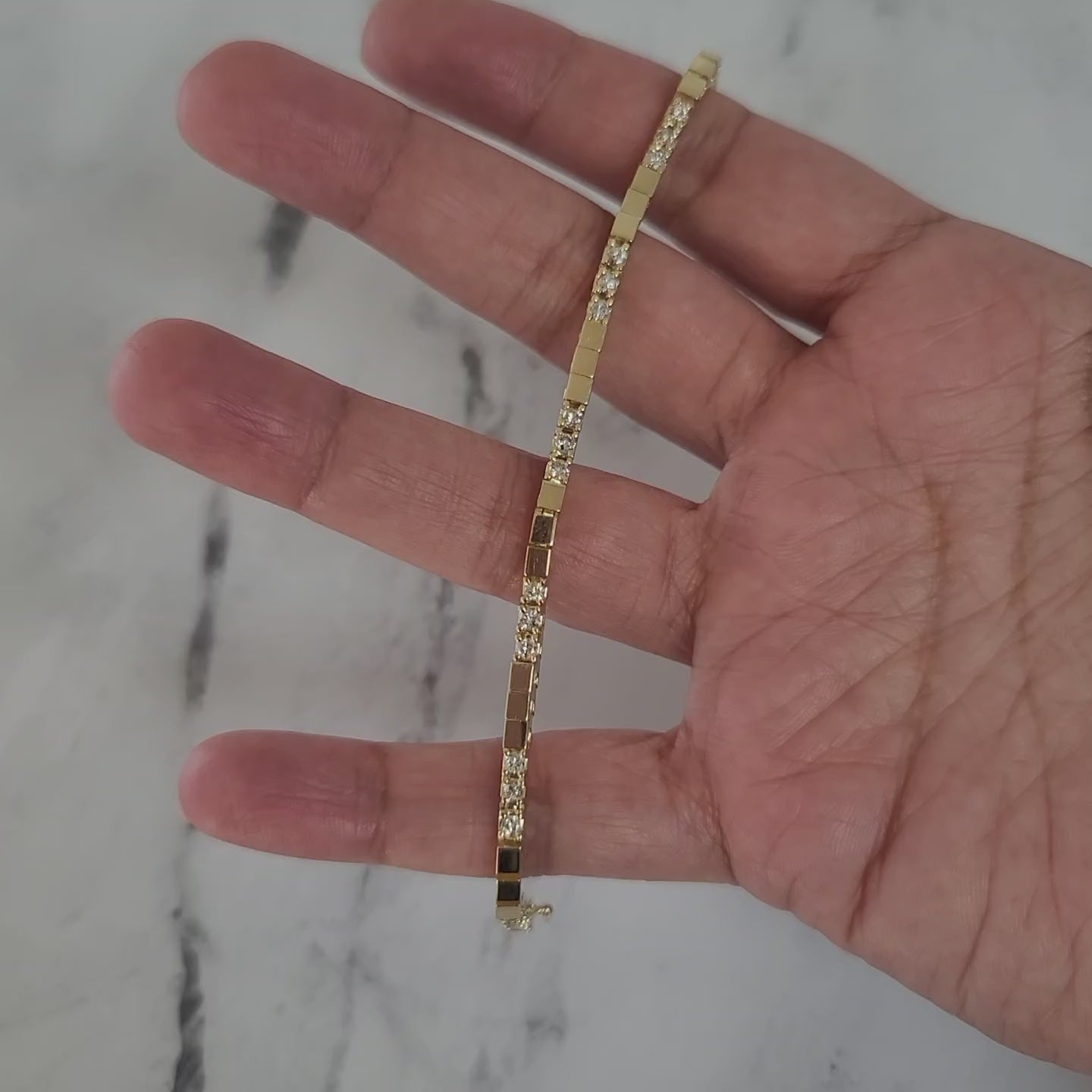 Pulsera de tenis con diamantes cuadrados pulidos en oro amarillo de 14 k