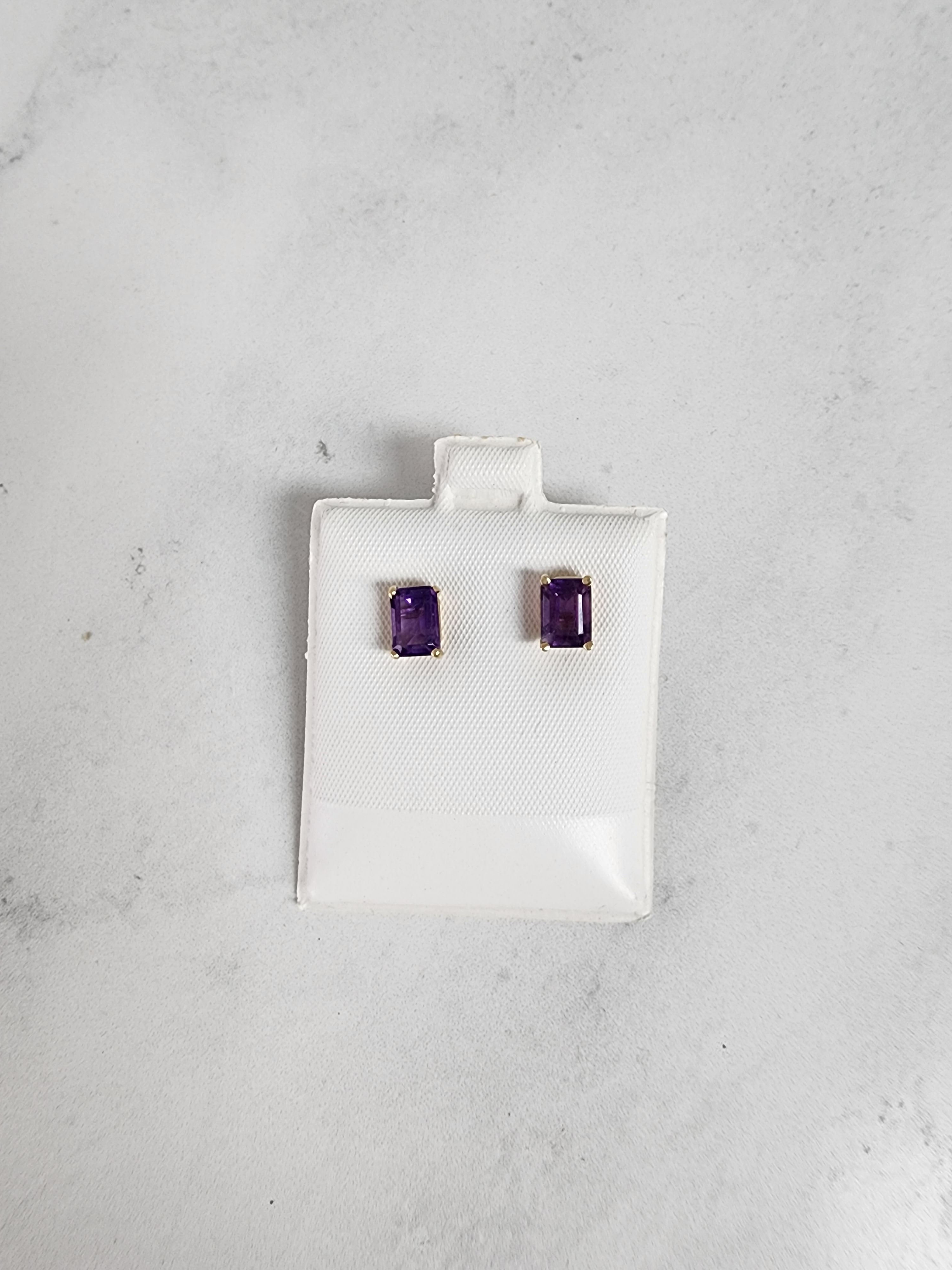 Pendientes rectangulares de amatista en oro amarillo de 14 k