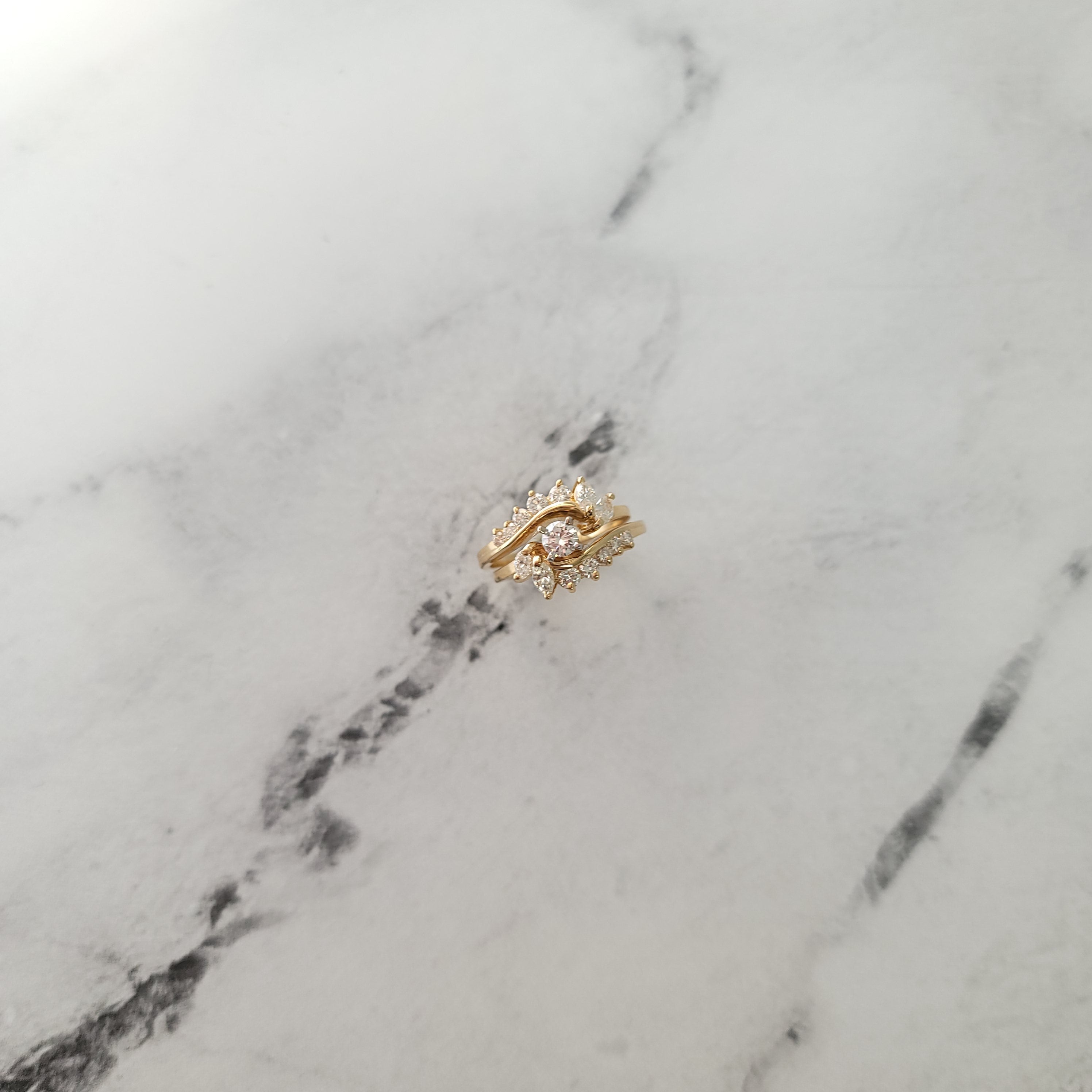 Anillo nupcial con detalles en marquesa y diamantes redondos de 1,50 ct en oro amarillo de 14 k