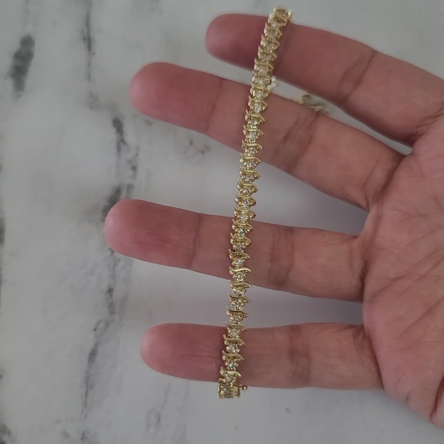 Pulsera de tenis con diamantes estilo S de 1,50 ct en oro amarillo de 14 k