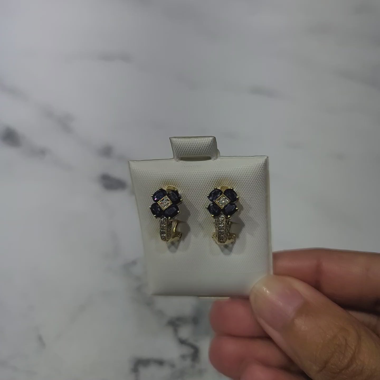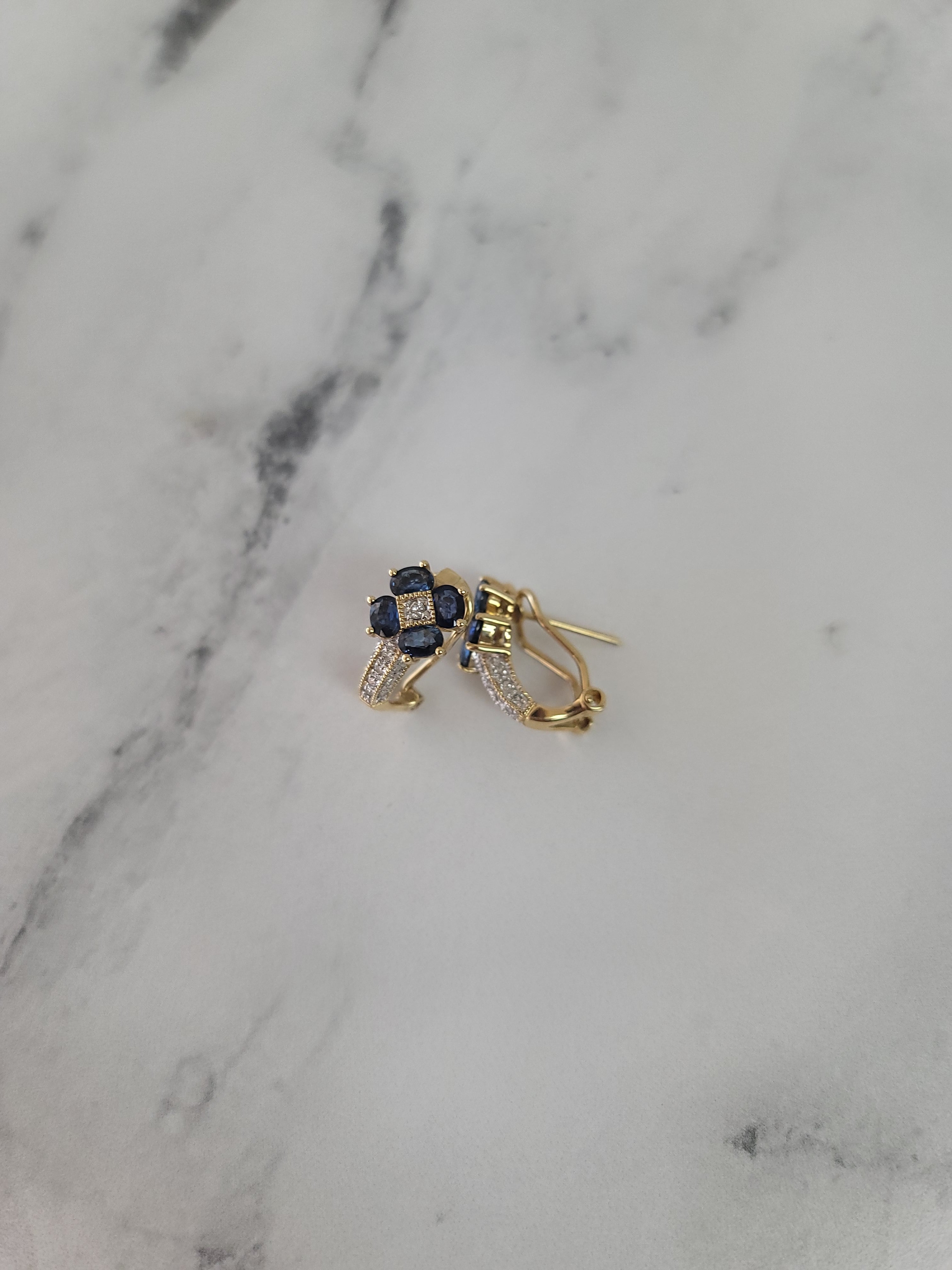 Pendientes de flor de diamantes y zafiro de 0,18 ct en oro amarillo de 14 k