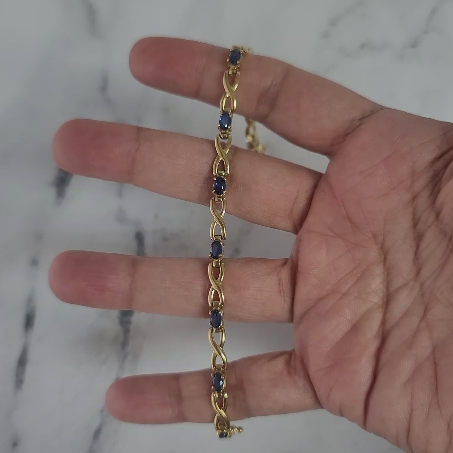 Pulsera de tenis con zafiro infinito de 1,50 ct en oro amarillo de 14 k