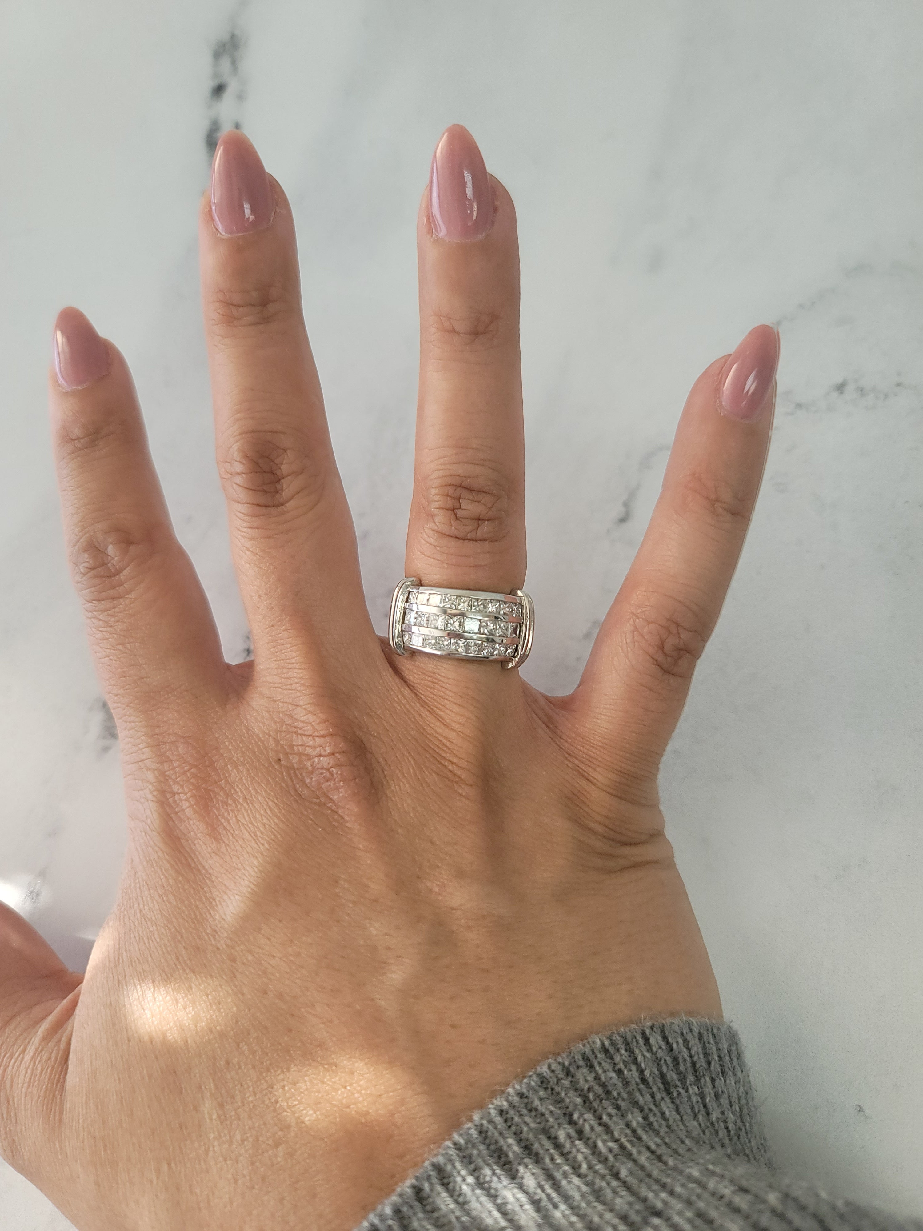 Anillo de diamantes de talla princesa de tres filas, 1,86 cts