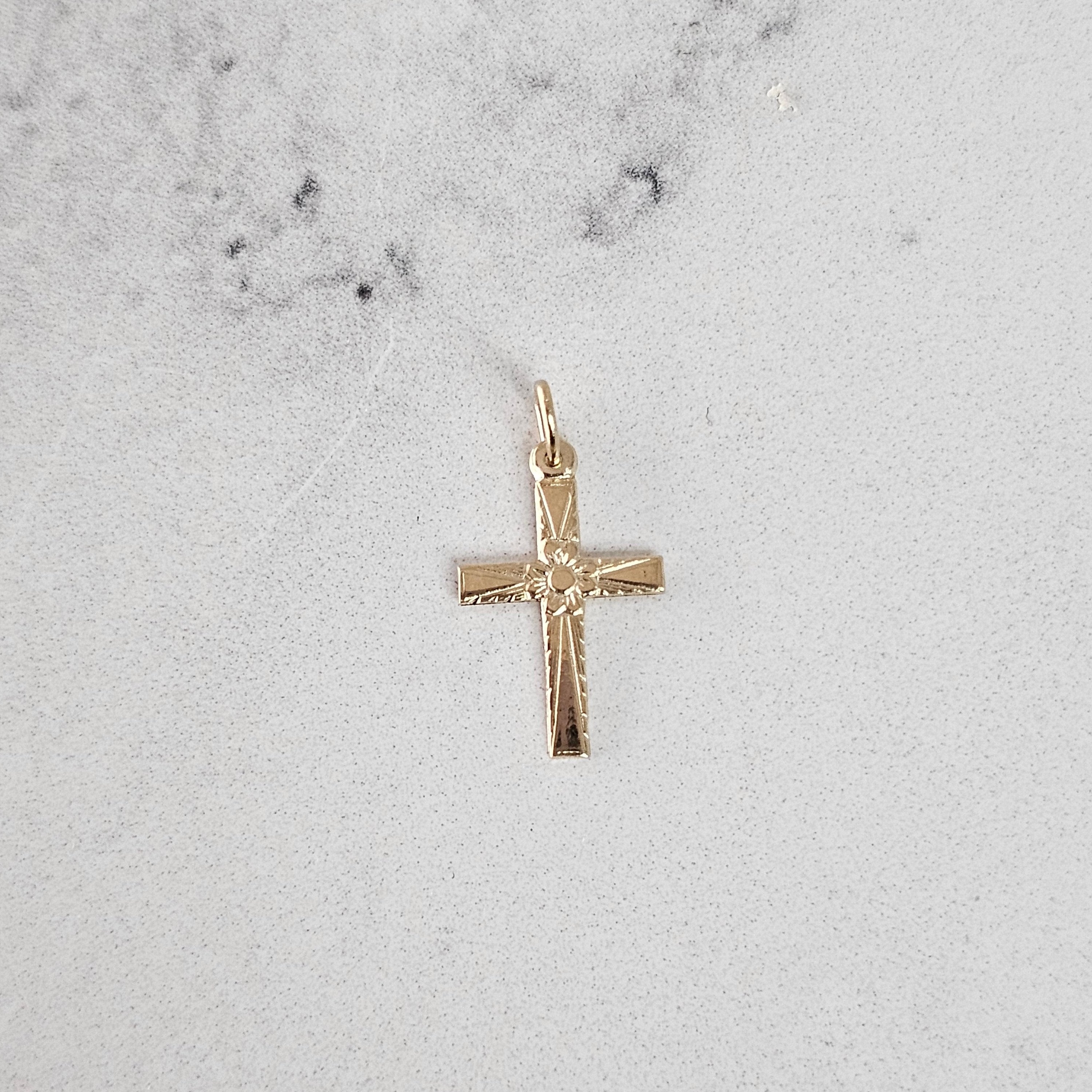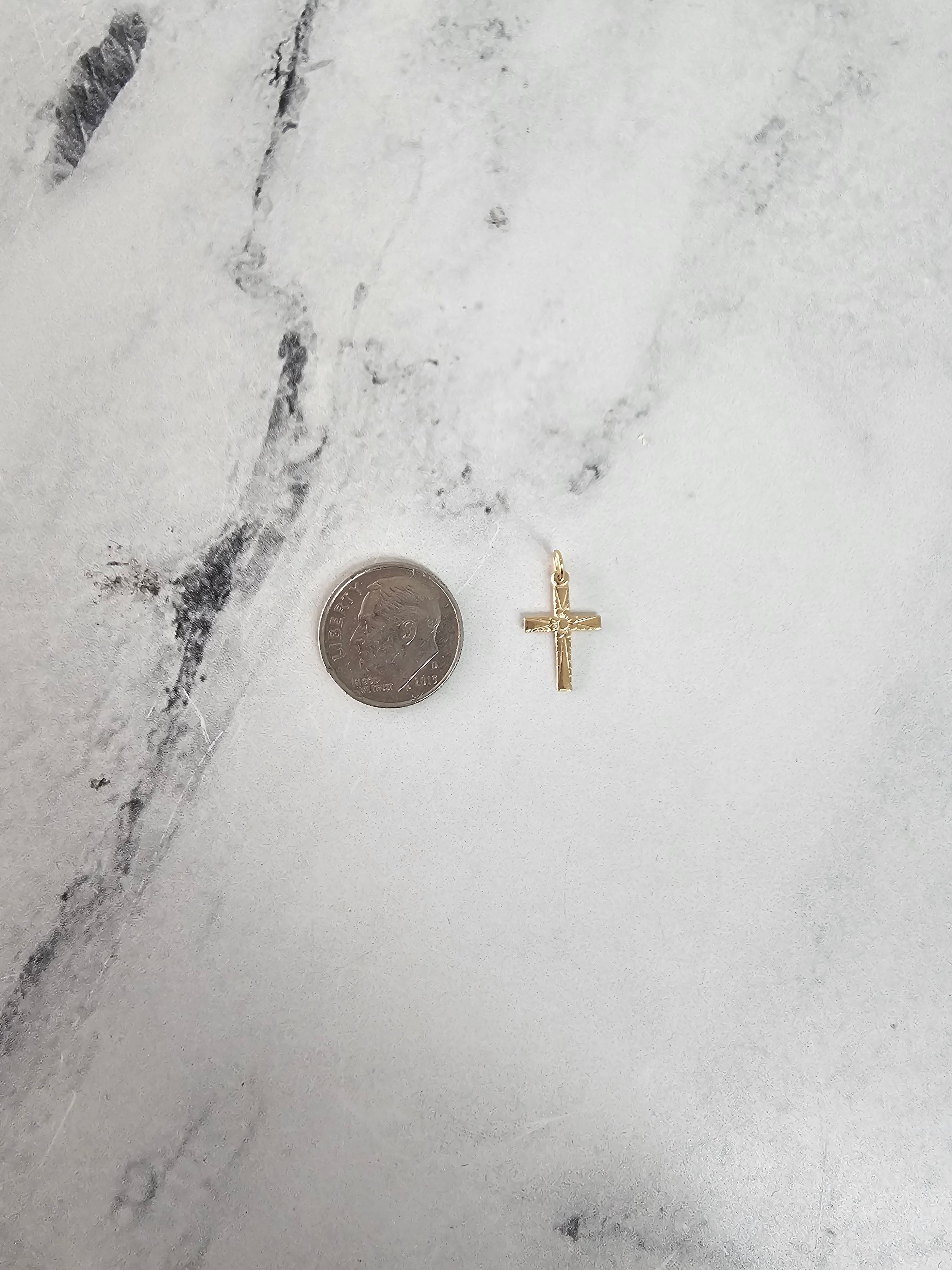 Cruz estilo vintage con diseño de flores en el centro en oro amarillo de 14 k