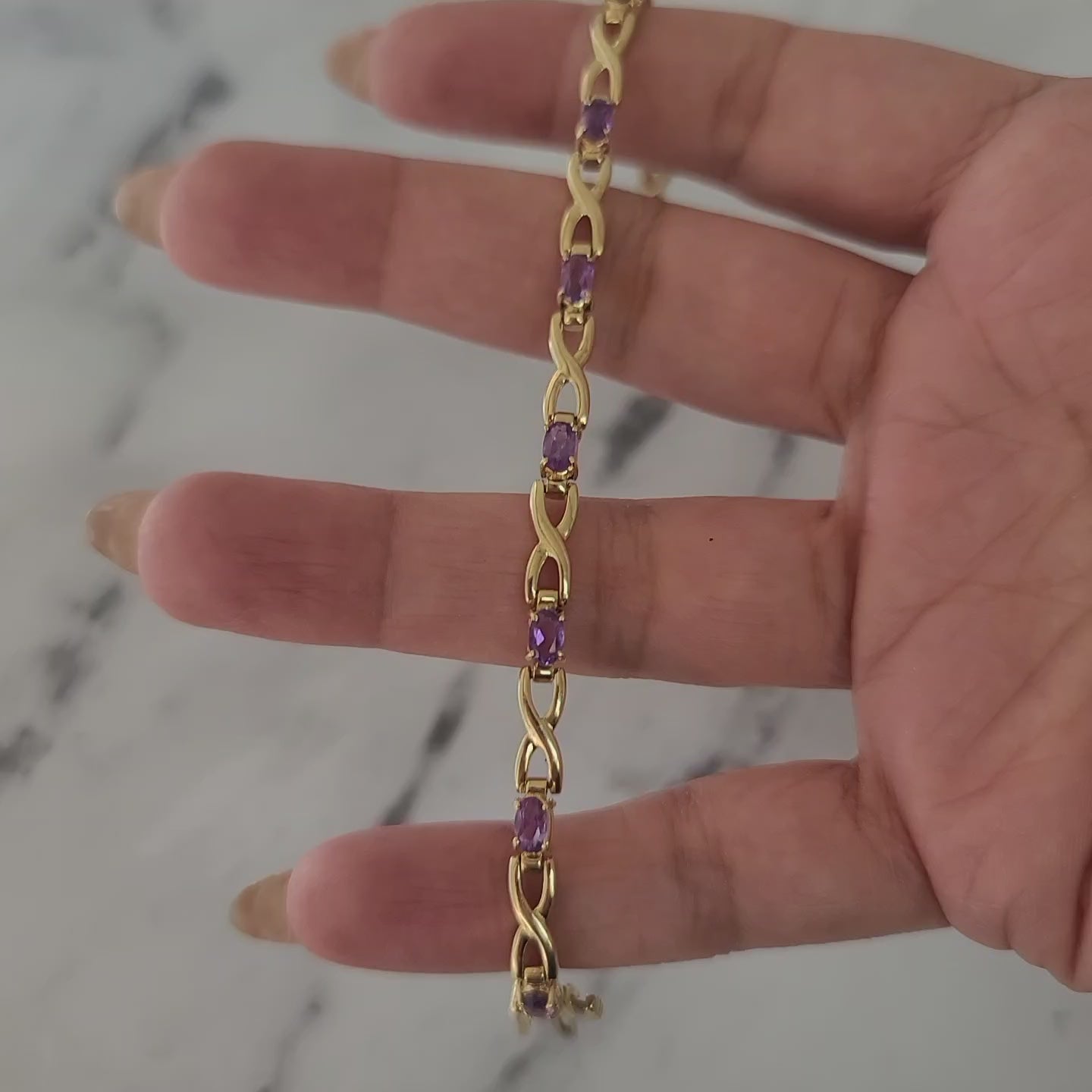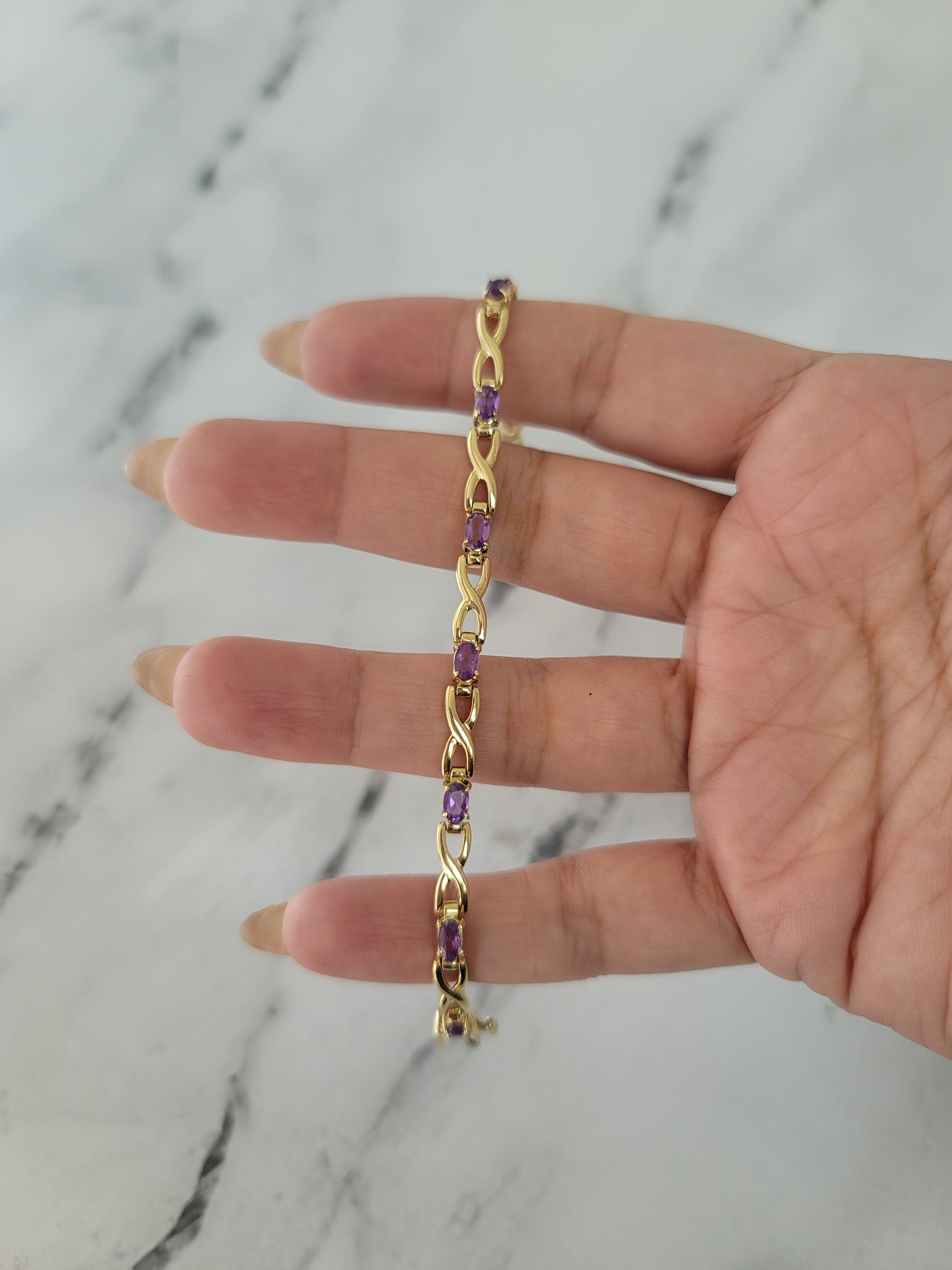 Pulsera de tenis con amatista estilo X de 2 quilates