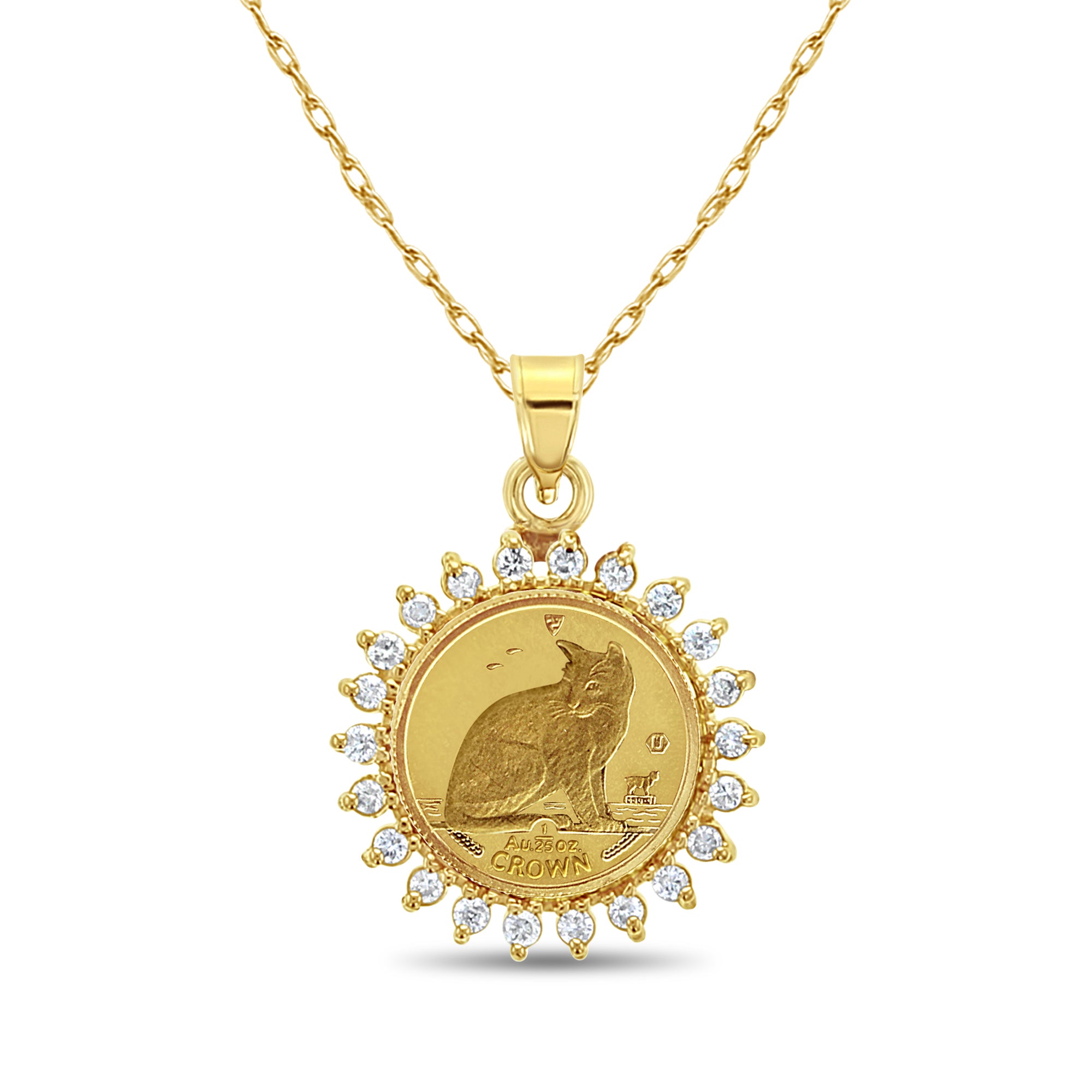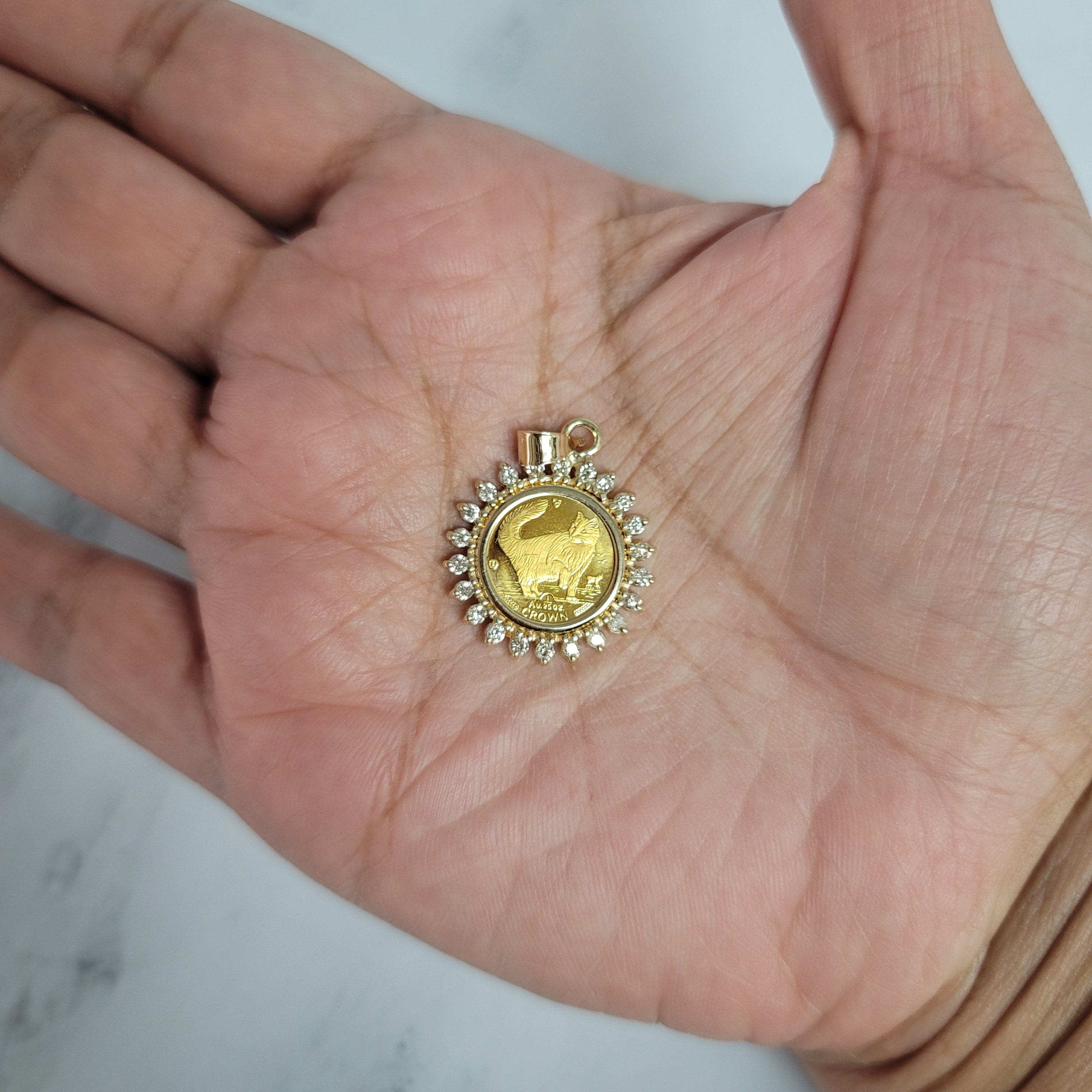 Collier avec pièce d'or fin et halo de diamants de l'île de Man
