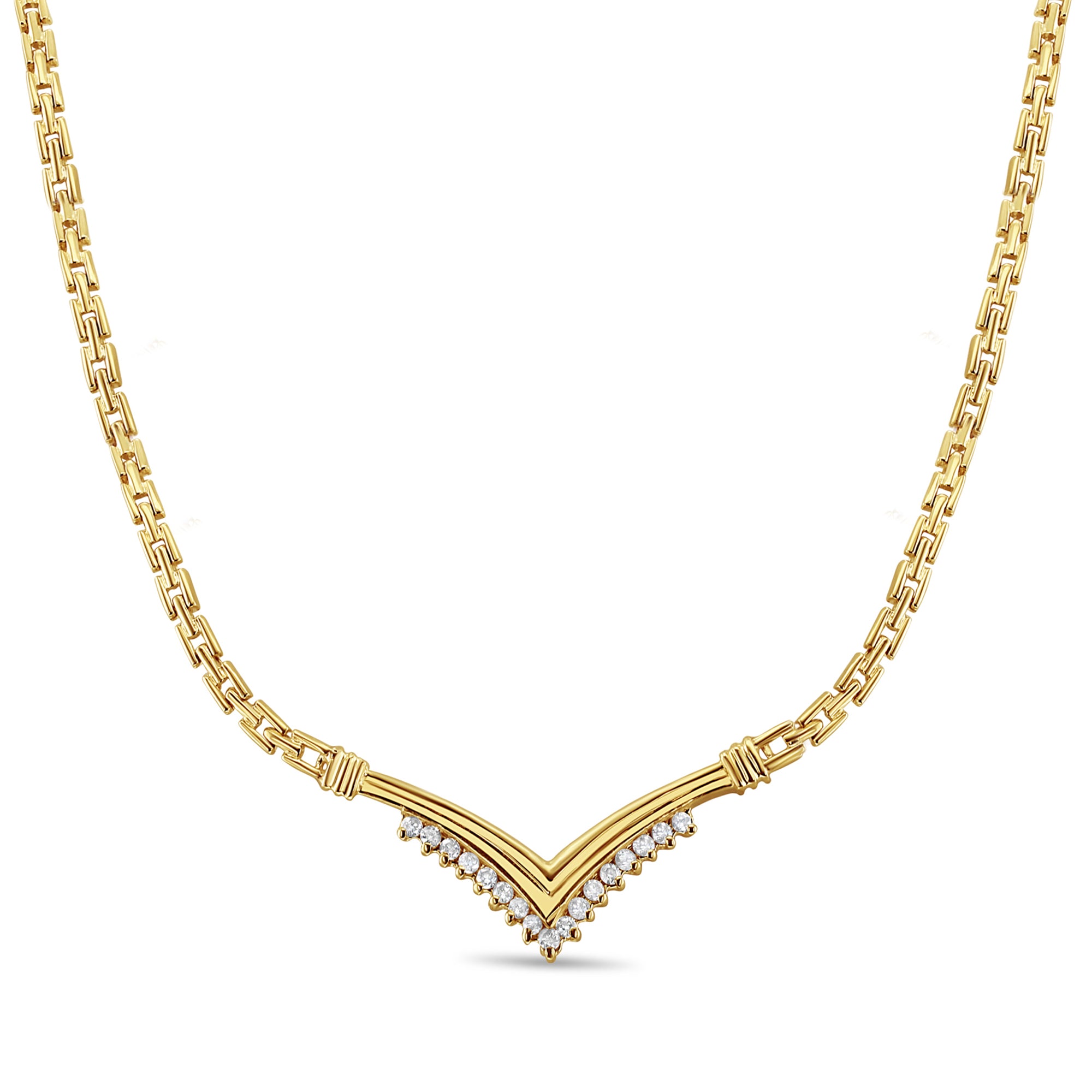 Collier style vintage en diamant bicolore en forme de « V »