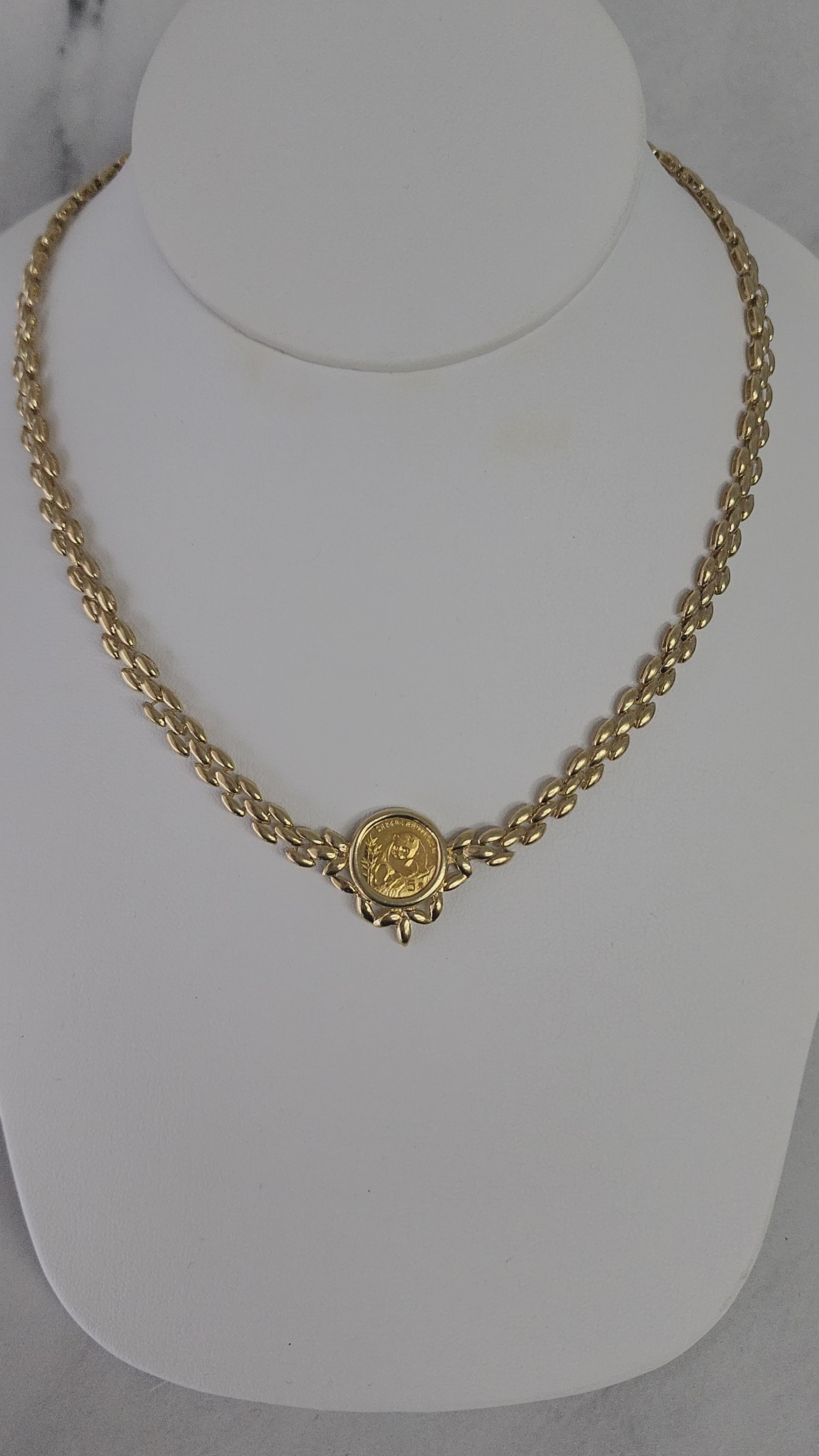 1/20OZ Panda Coin Necklace with Polished Gold Link Chain