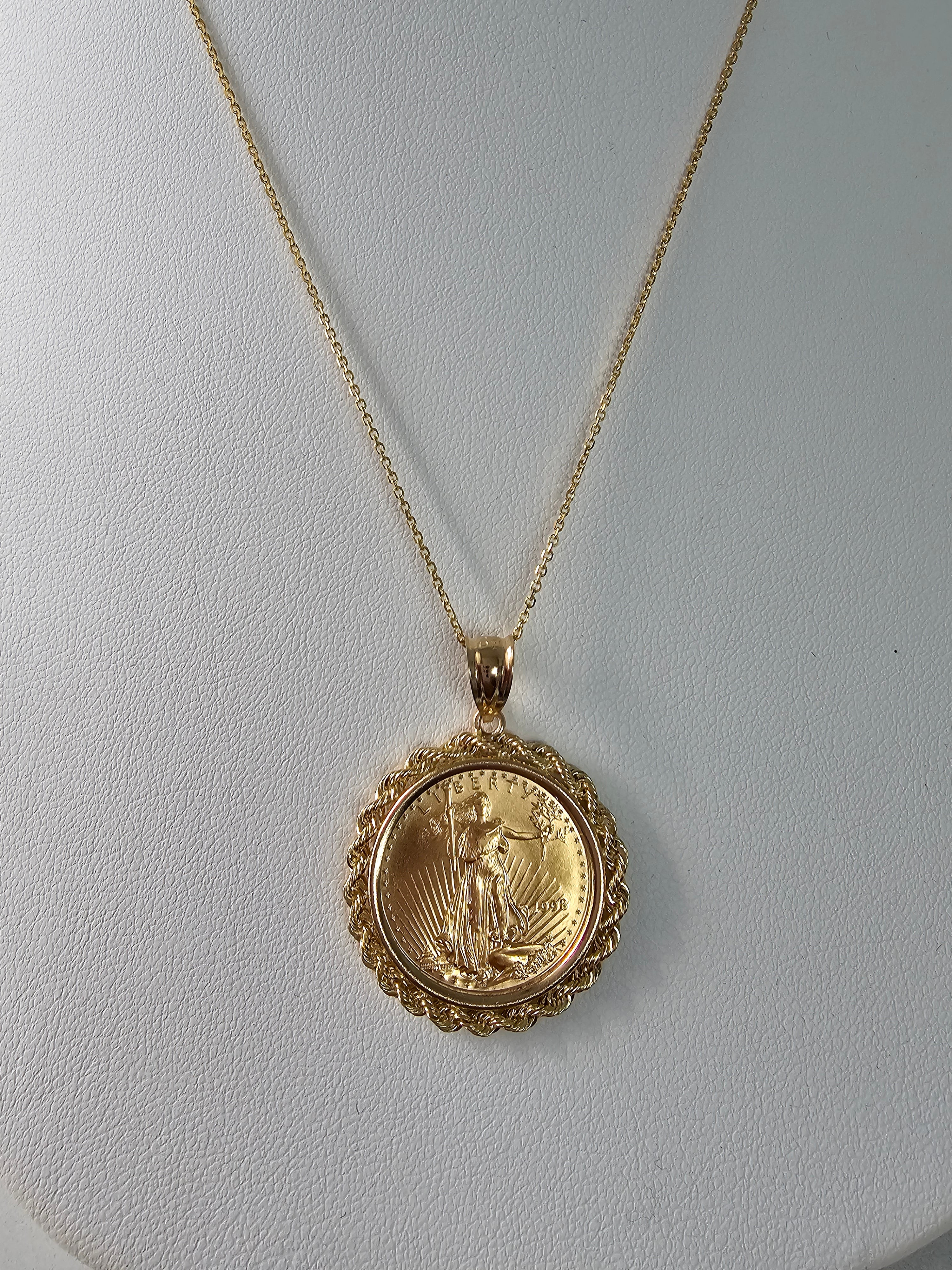 1/4OZ Lady Liberty Coin Necklace with Rope Halo