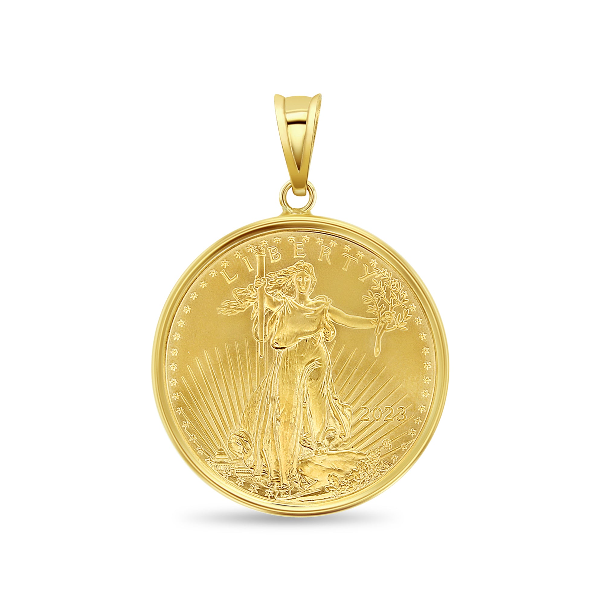 1OZ Lady Liberty Flying Eagle Coin Necklace with Polished Bezel
