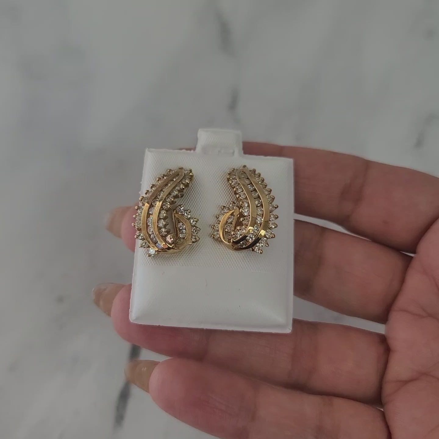 3 Carat Cluster Diamond Earrings 14k Yellow Gold