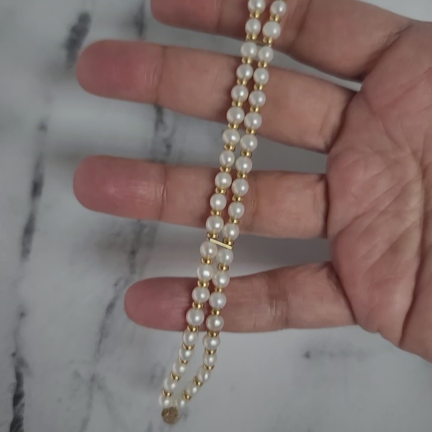 Double Row Cultured Pearl Bracelet 14k Yellow Gold