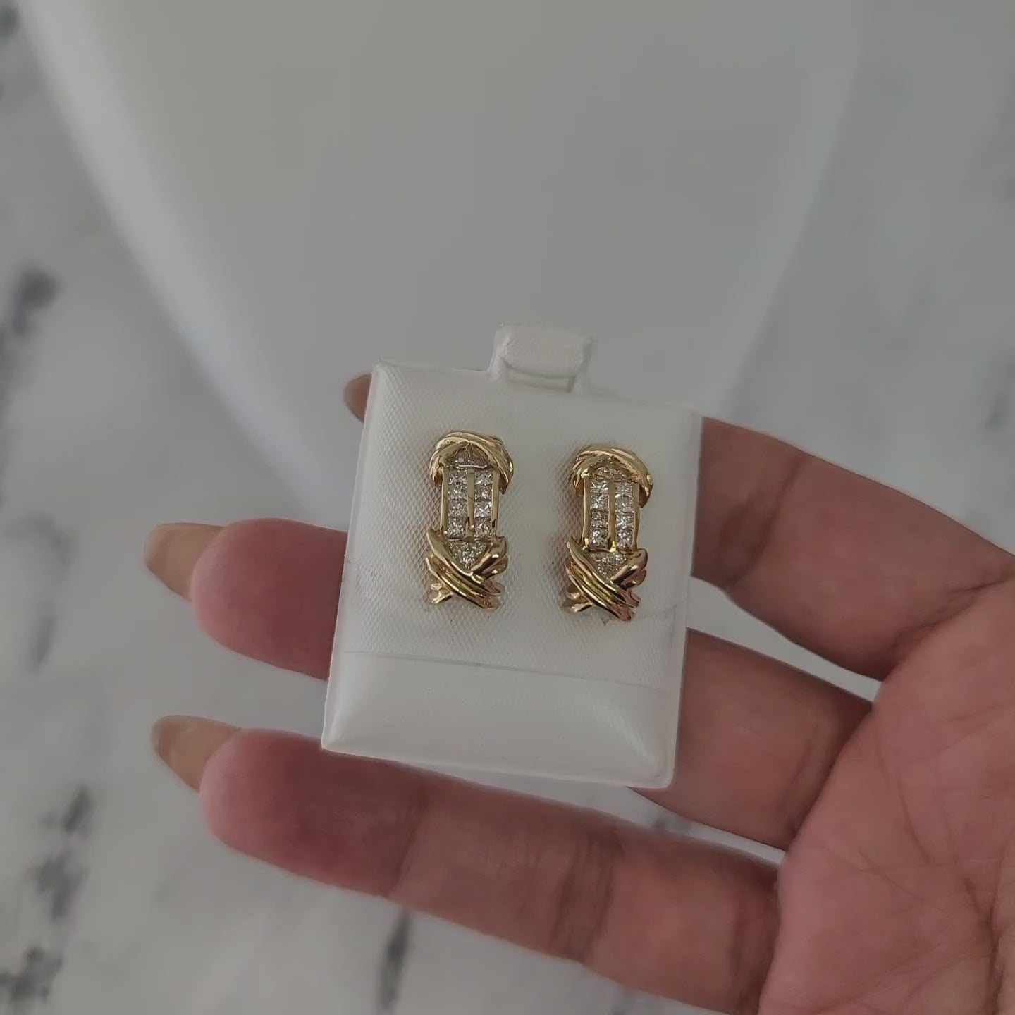 Double 'X' Princess & Trillion Cut Diamond Earrings 14k Yellow Gold