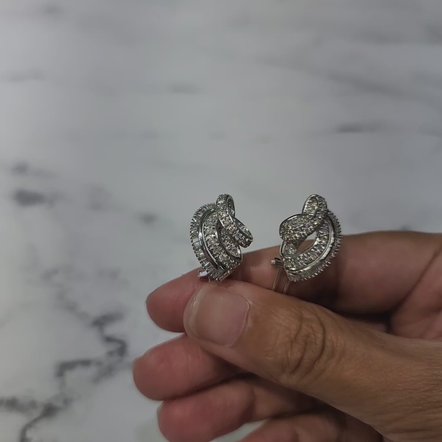 Pave Diamond Baguette Diamond Earrings 1.22cttw 14k White Gold