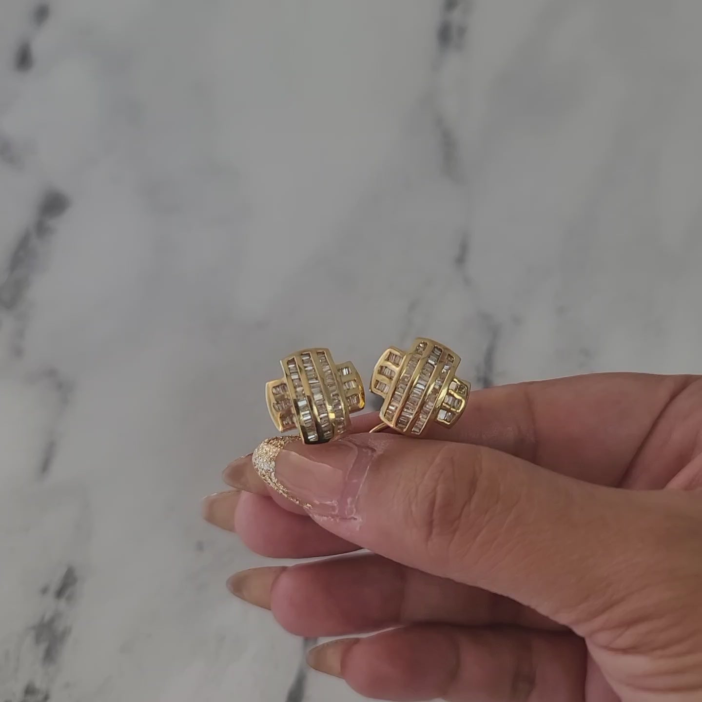 Plus Shaped Cross Diamond Baguette Earrings 1.50cttw 14k Yellow Gold