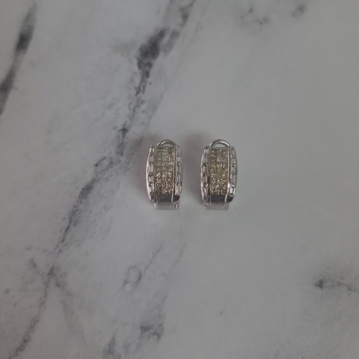 Princess & Baguette Diamond Omega Clip-On Earrings